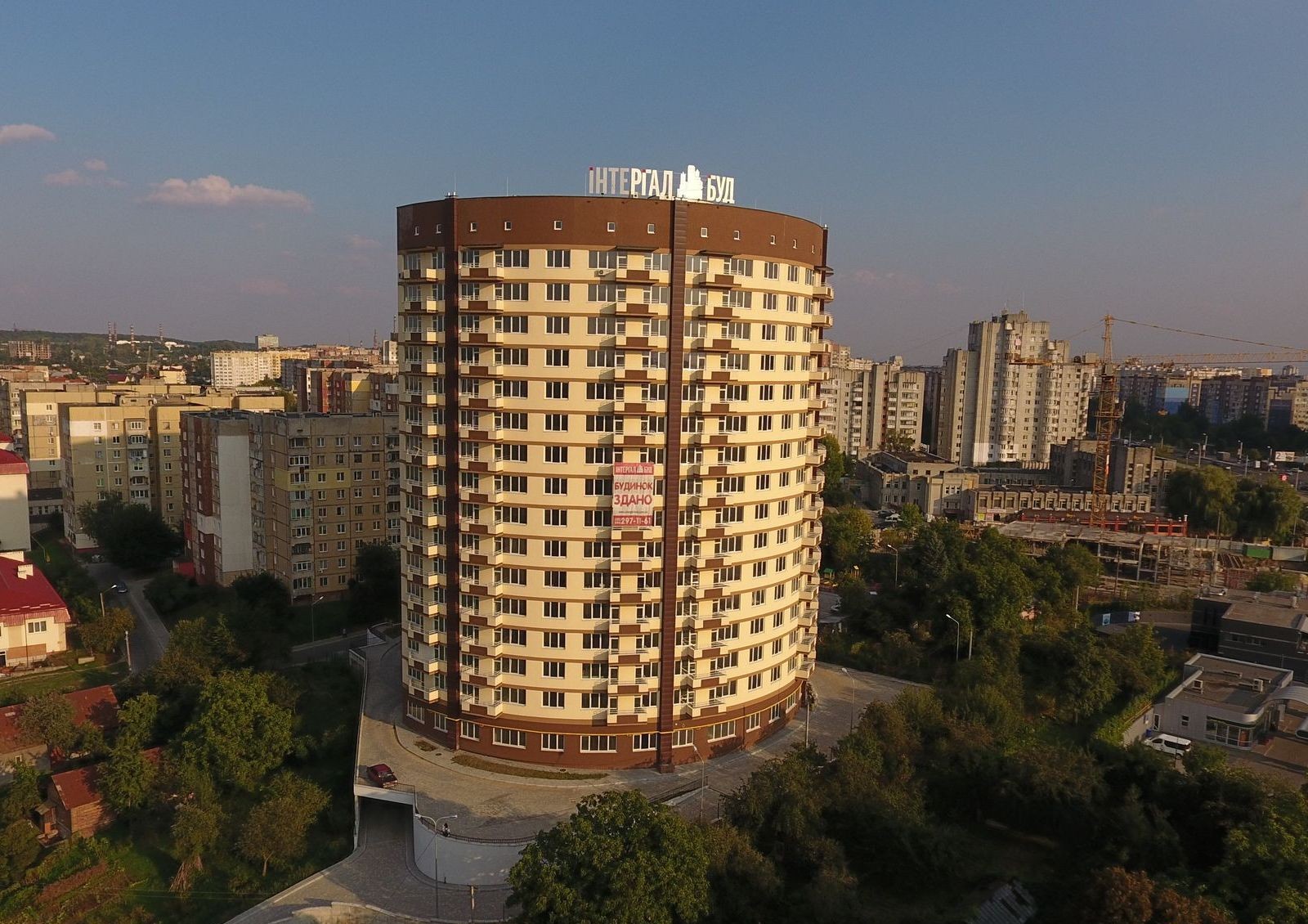 Большое внимание уделено организации придомовой территории. В ее границах обустроена зона отдыха, детская площадка, а также паркинг. Новый ЖК на ул. Бережанская 54 – от Интергал-Буд во Львове утопает в зеленых насаждениях, которые отрезают его от шума автомагистралей, гула машин и выхлопов большого города. Вместе с тем, благодаря налаженному транспортному сообщению от здания можно без труда добраться в любую точку города.