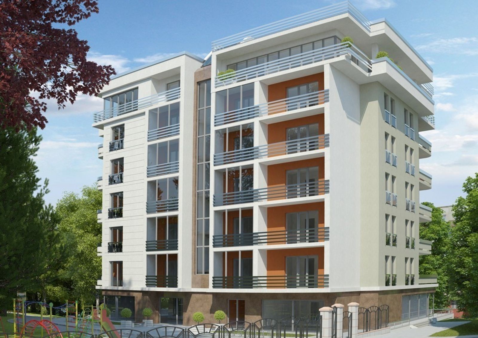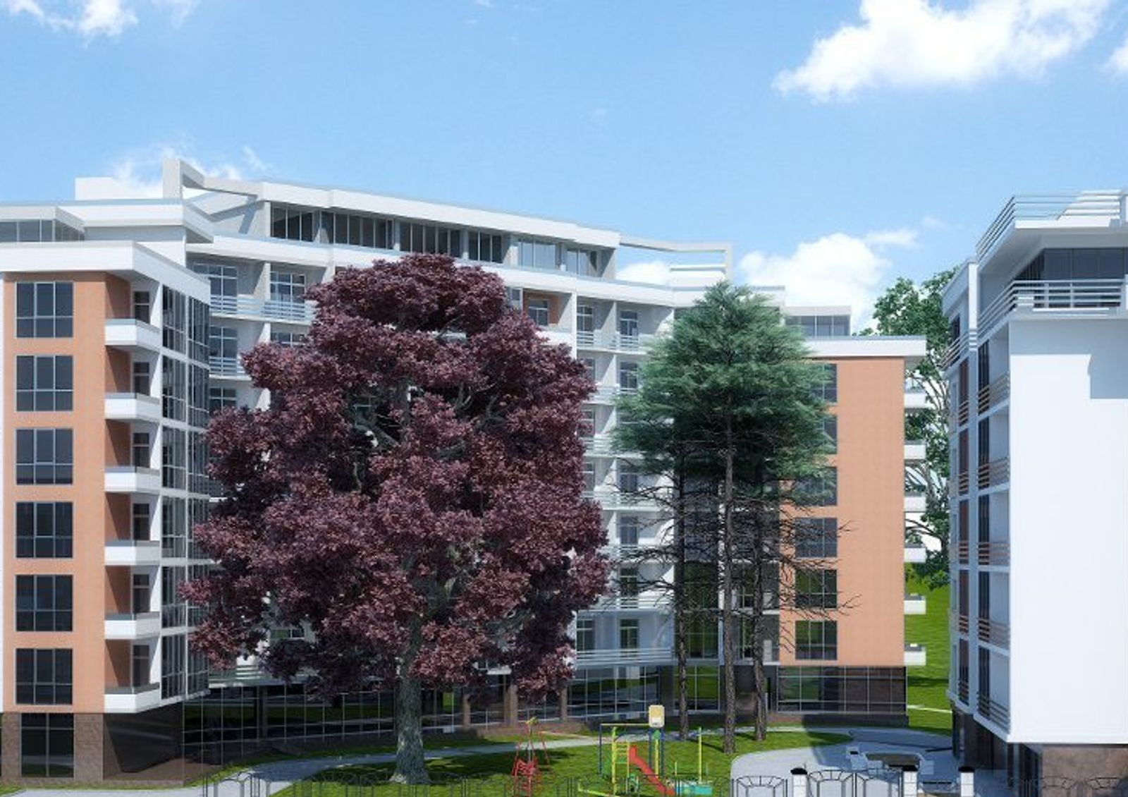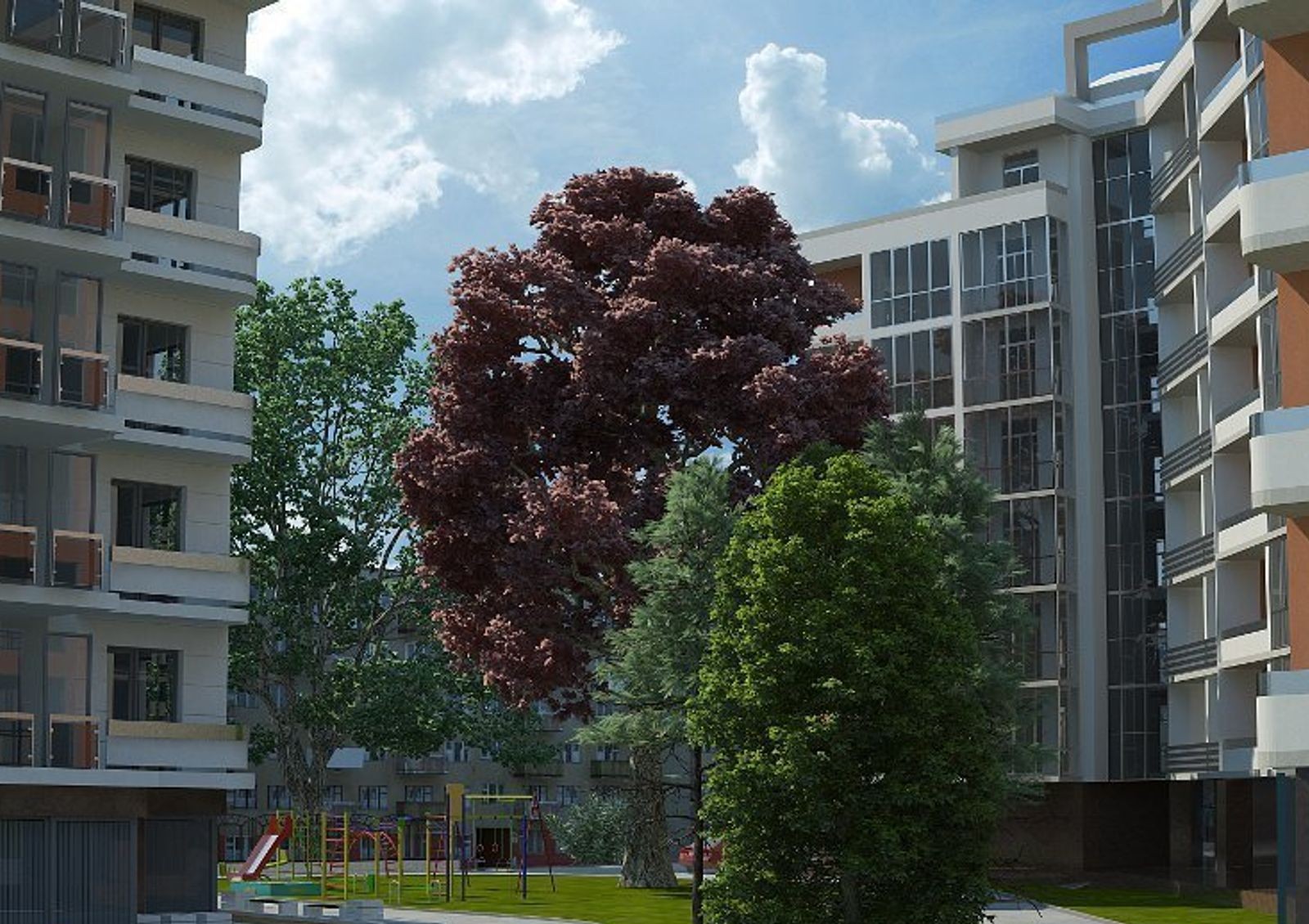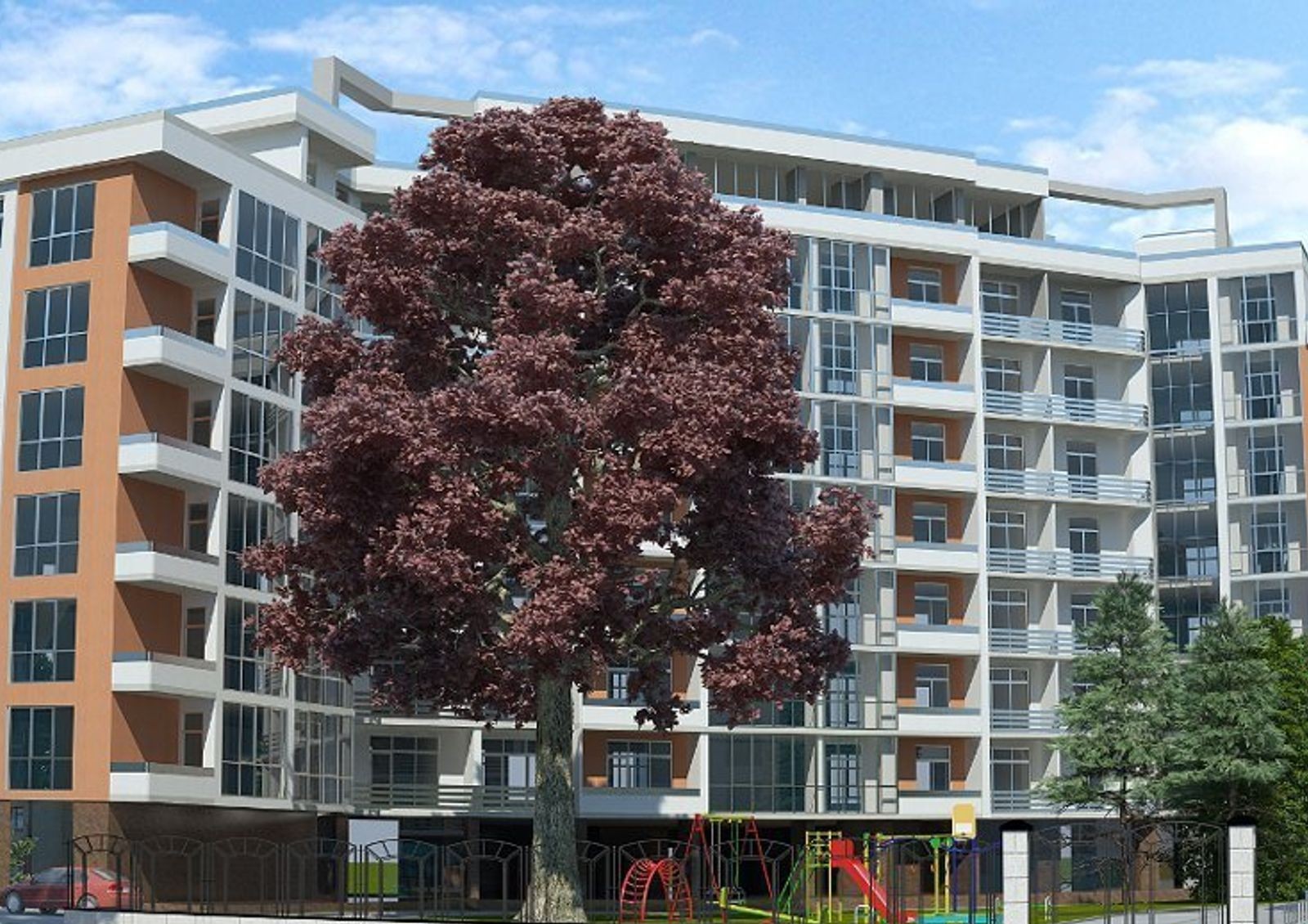 Новостройка относится к бизнес классу недвижимости. Это подтверждается наличием обустроенной инфраструктурой, как самого дома, так и всего района. Всего комплекс насчитывает два здания на 8-9 этажей. Среди покупателей популярным его делает удачное сочетание комфорта и современных технологий. Уютный дворик с тротуарами, детской площадкой и зоной для отдыха взрослых огражден от посторонних. Для владельцев автомобилей в комплексе предусмотрен двухуровневый подземный паркинг с лифтом.
