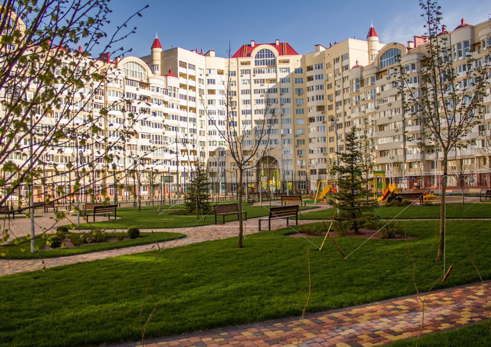 7-10-этажные жилые дома расположены в тихой, уютной, экологически безопасной курортной зоне с озелененной территорией и живописным видом из окна. Поблизости есть социально-значимые объекты, набережная р. Южный Буг, парк Лески и озеро.