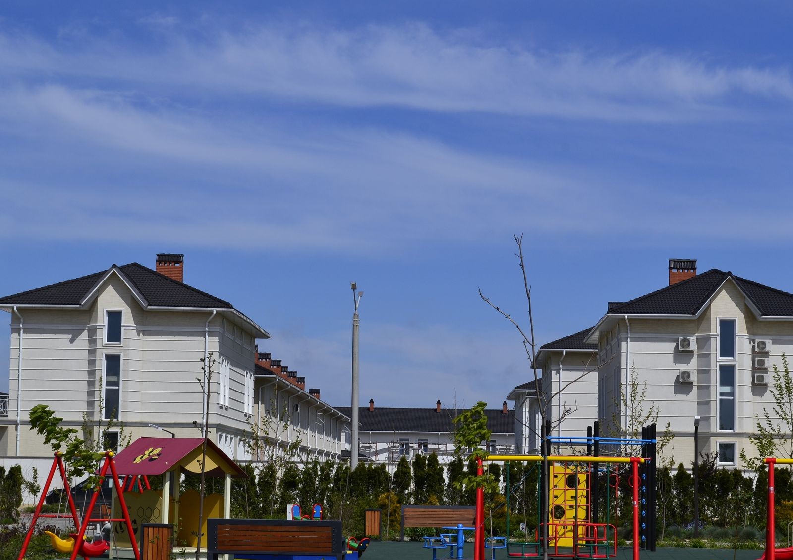 в стоимость коттеджа входит участок площадью 6-9 соток, таунхауса — 1,6 сотки, дуплекса — 3-4 сотки