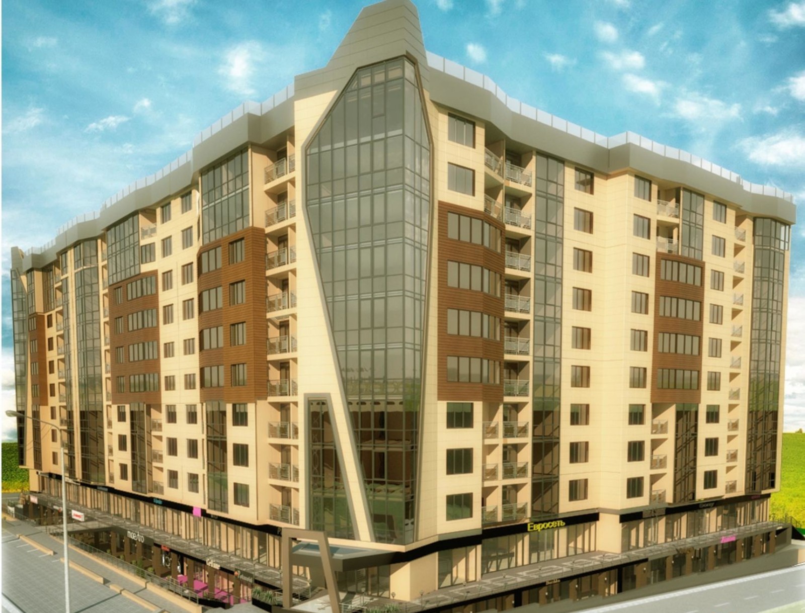 В новом микрорайоне строится подземный паркинг на двести автомобилей, здания комплектуются бесшумными лифтами, на входах в подъезды устанавливаются видеофоны.