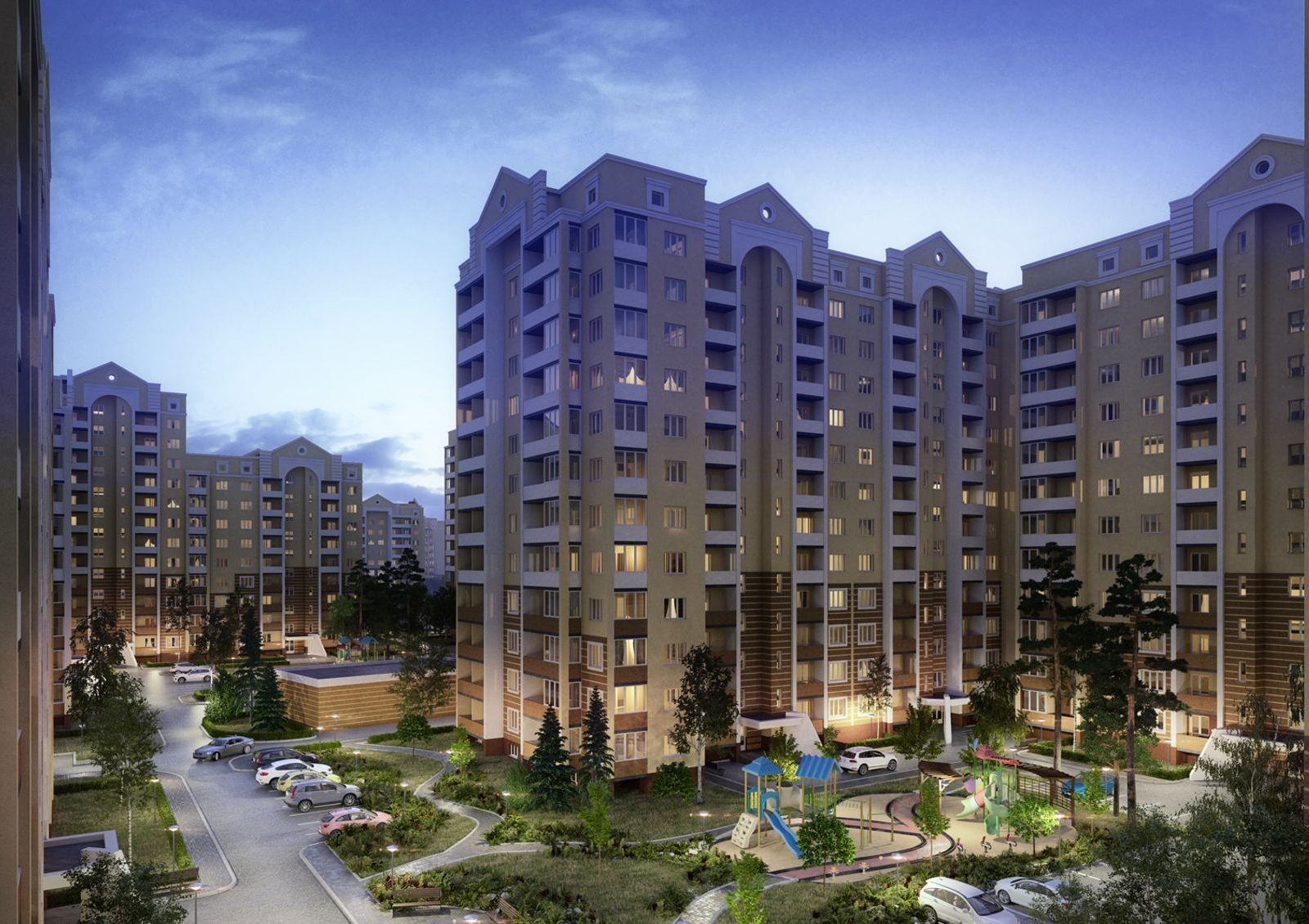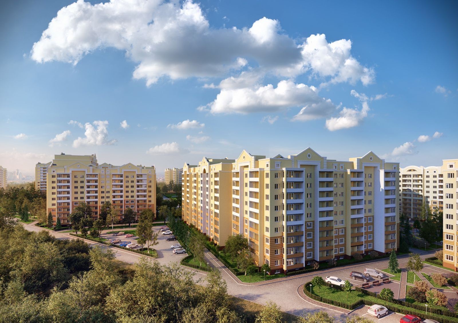 Все многоквартирные жилые здания комплекса сооружаются из кирпича. Их фасады надежно утепляются плитами пенопласта – экологически безопасного теплоизолятора с наилучшими на сегодня показателями. Это не только обеспечивает защиту от шума и поддержание комфортной температуры в помещениях, но и существенно снижает стоимость отопления жилья.