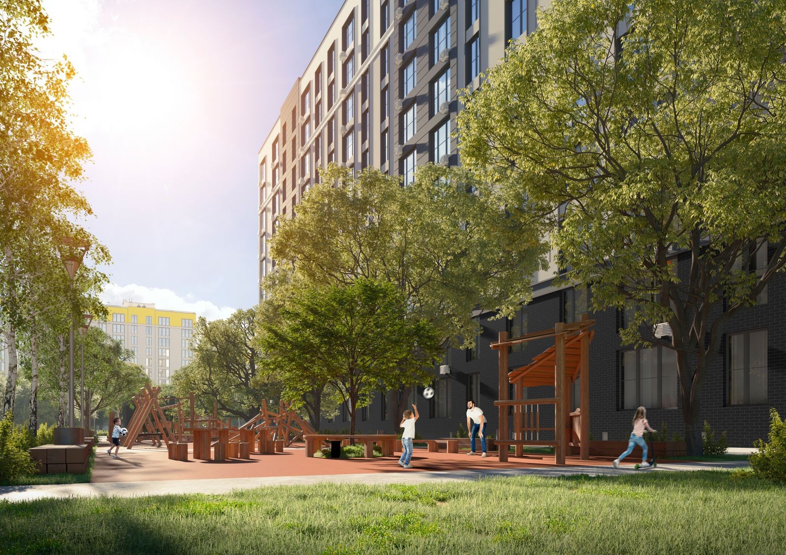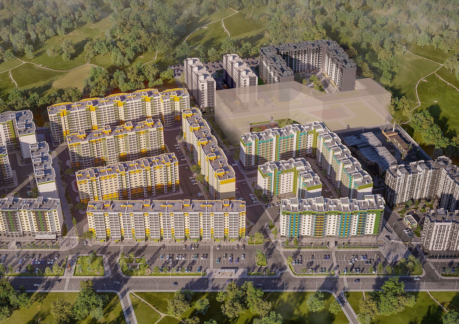 Жилой комплекс «Европейське місто» - современный, премиальный жилой комплекс, который расположен в ближнем пригороде Киева, в районе Крюковщины-Вишневого, то есть всего в нескольких километрах от Большой Окружной дороги.