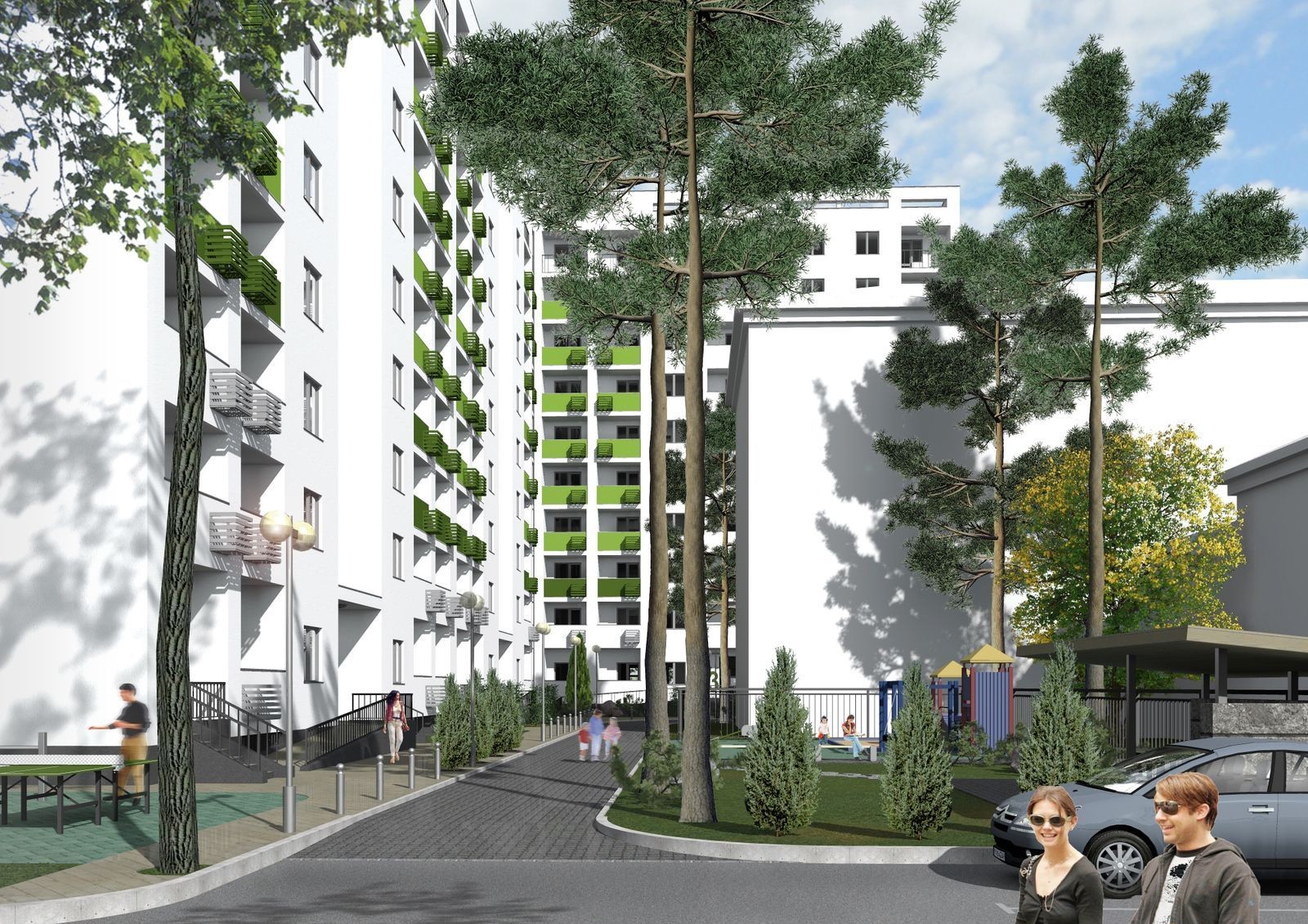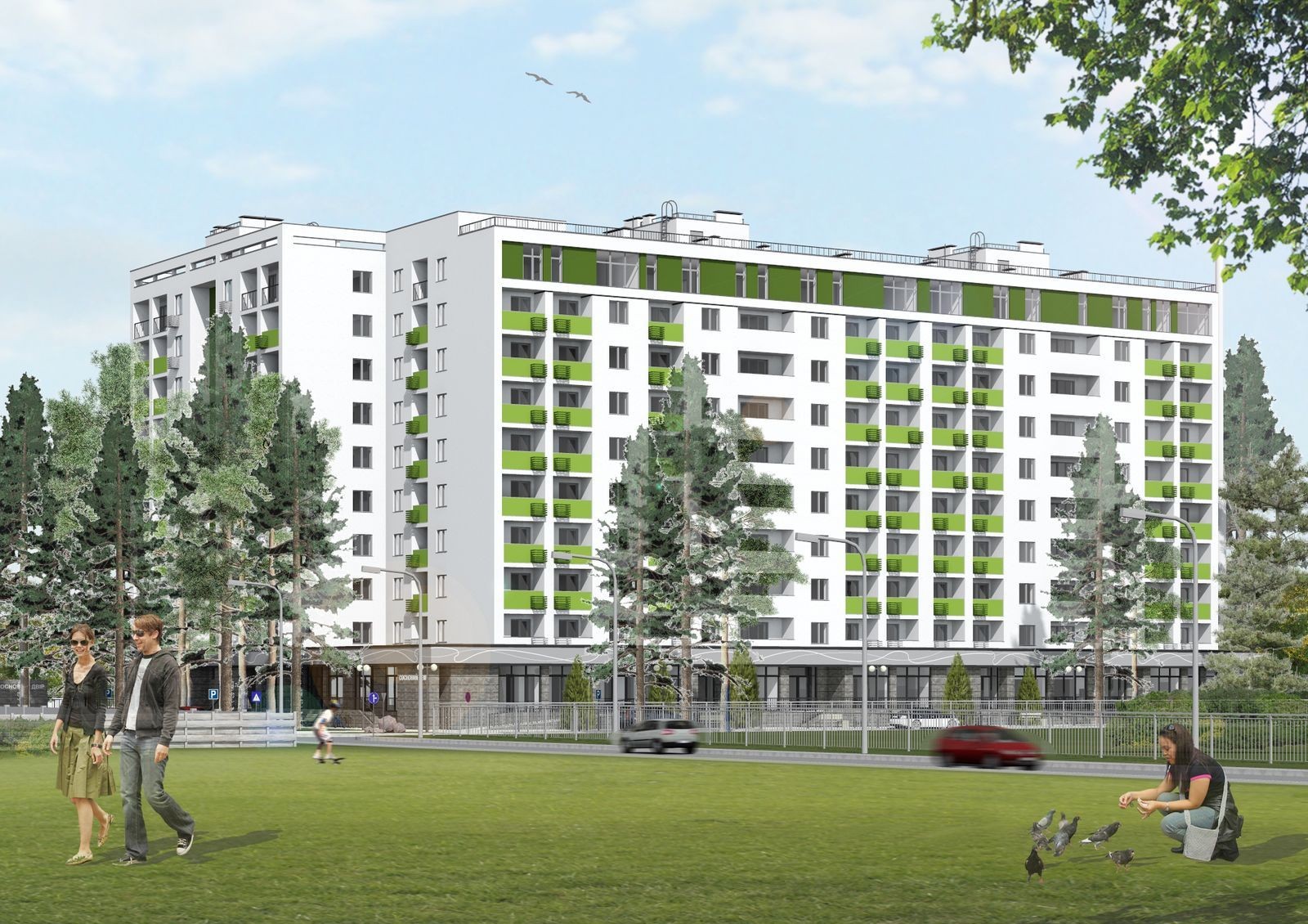 Десятиэтажная новостройка разделена на три секции и насчитывает 173 одно-, двух- и трехкомнатных апартаментов. Планировки квартир не отличаются большим разнообразием, тем не менее, здесь есть из чего выбрать. Комплекс имеет собственную наземную парковку на 90 паркомест.