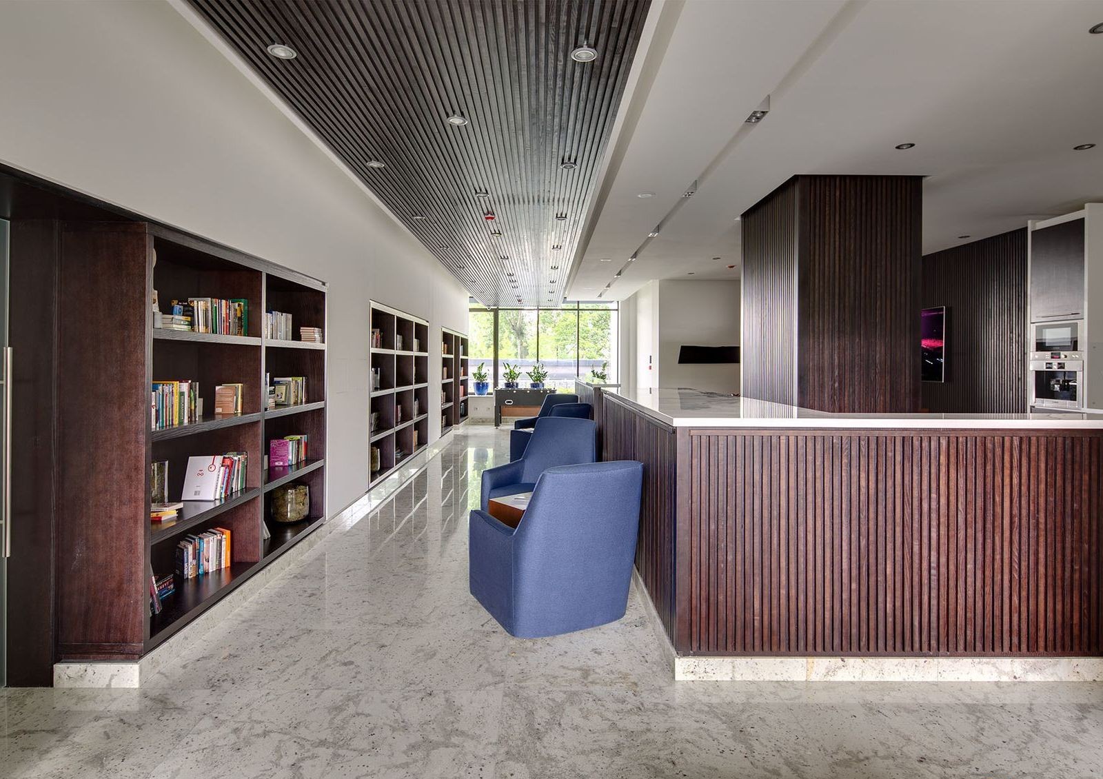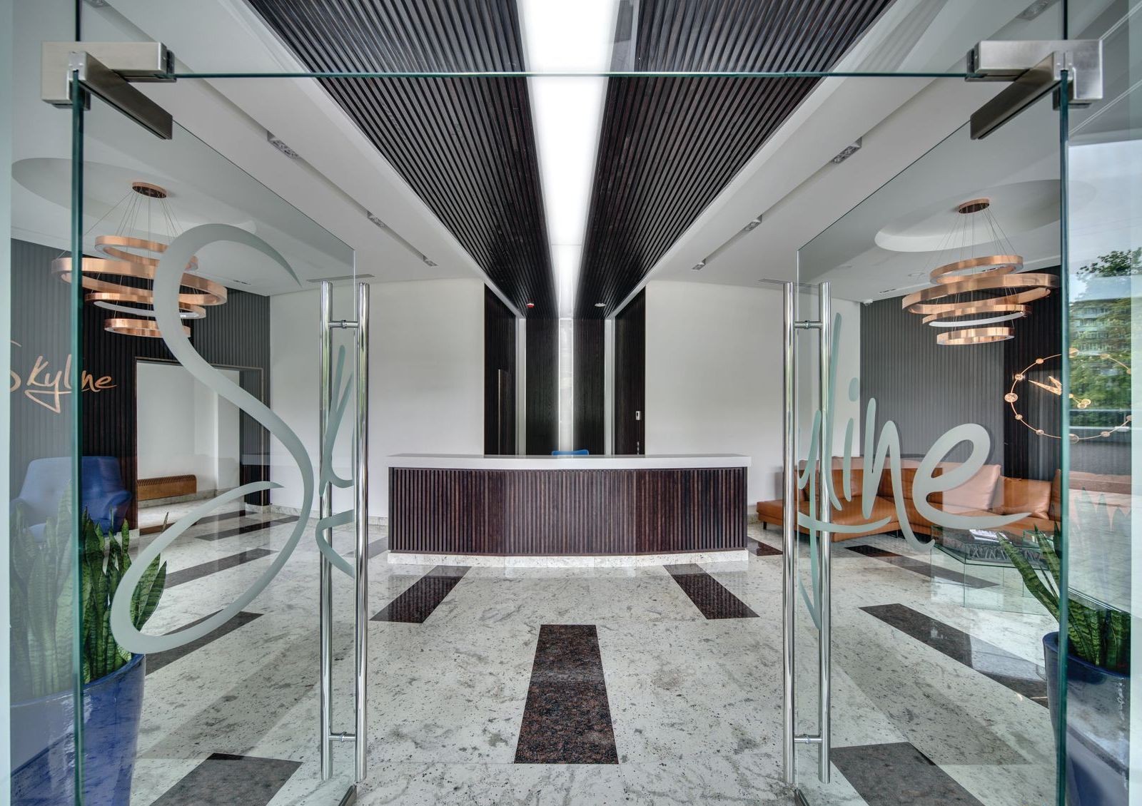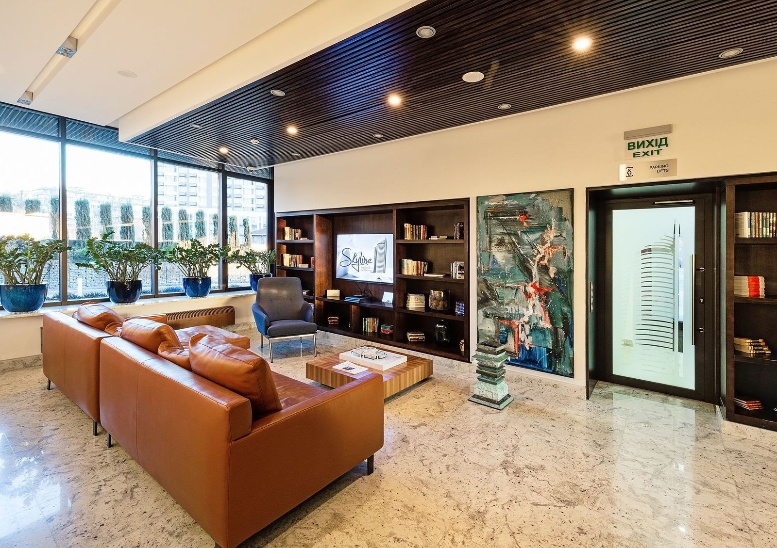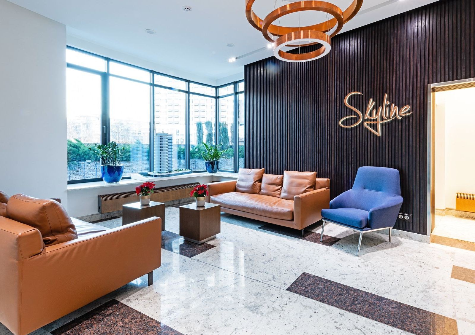 Skyline — это жилой комплекс клубного формата с общими пространствами для жильцов. Особенность комплекса — лобби зона с комфортной зоной отдыха, мини-кинозалом, библиотекой и камином. Не забыли и про детей — помимо детской игровой комнаты оборудована закрытая детская площадка на дворе. Также во дворе обустроена барбекю зона.