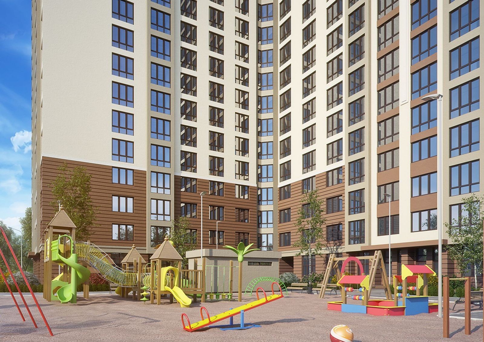 По улице Армянская 6а Ковальская занимается не только строительством уютного комплекса класса комфорт, но и благоустройством территории. Двор комплекса будет озеленен, планируется асфальтирование дорожек и организация современной площадки для отдыха детей.