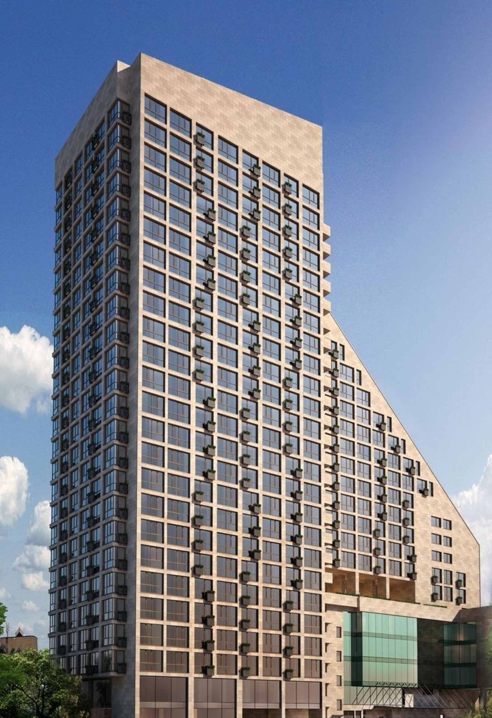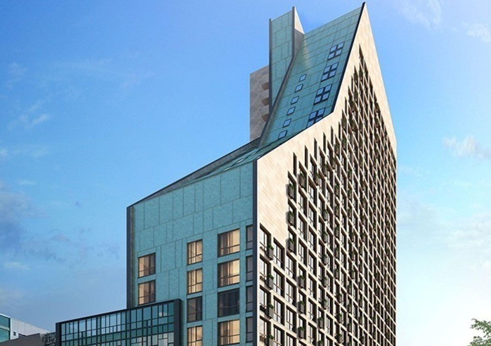Детская площадка; площадка для отдыха жильцов на открытой террасе; зал для проведения мероприятий для жильцов ЖК; торговые помещения; коммерческие помещения; 5-этажный офисный блок