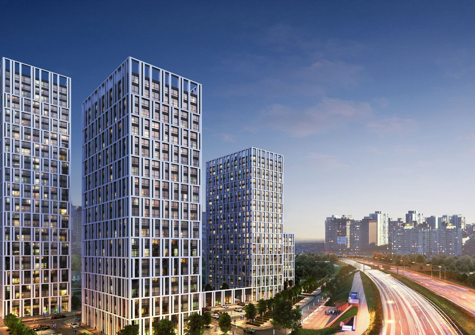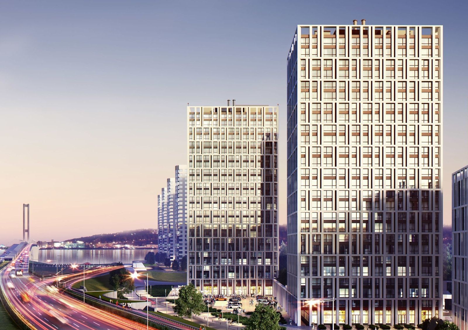 Возле комплекса удобная транспортная развязка — станция метро прямо под домом, рядом заезд на Южный мост соединяющий с правым берегом, минута до остановки общественного транспорта, 20 минут до аэропорта Борисполь.