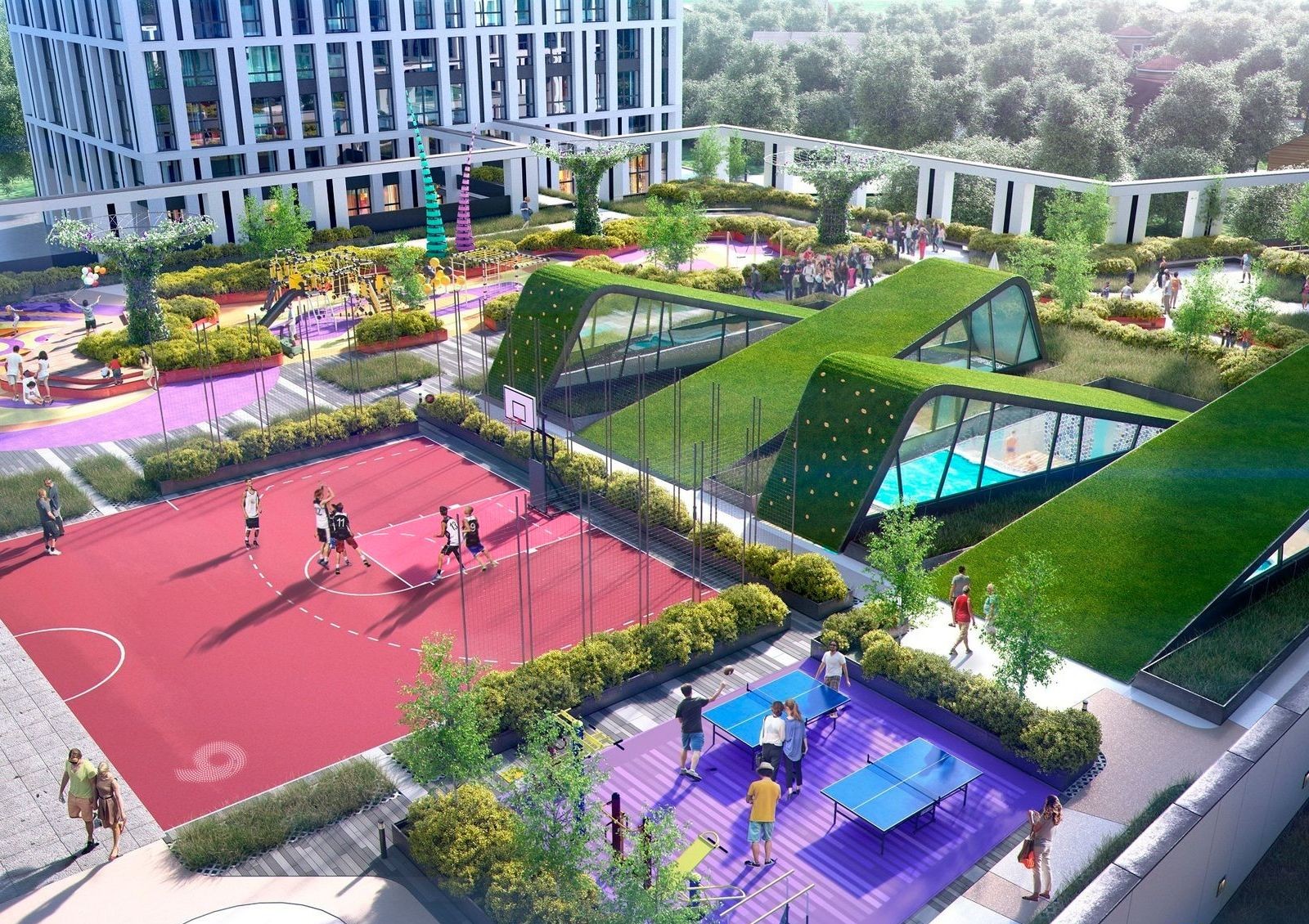Если любите заниматься спортом — на территории комплекса будут оборудованы спортивные площадки. Также в 5-10 минутах езды сетевые фитнес-клубы района.