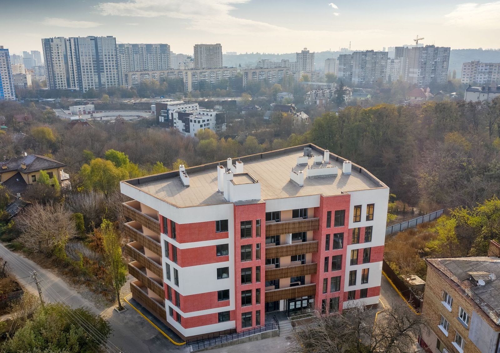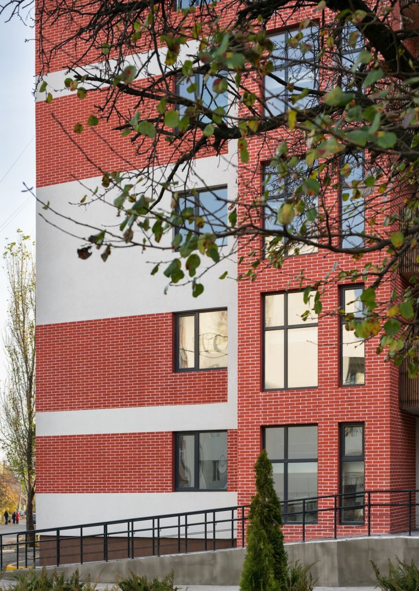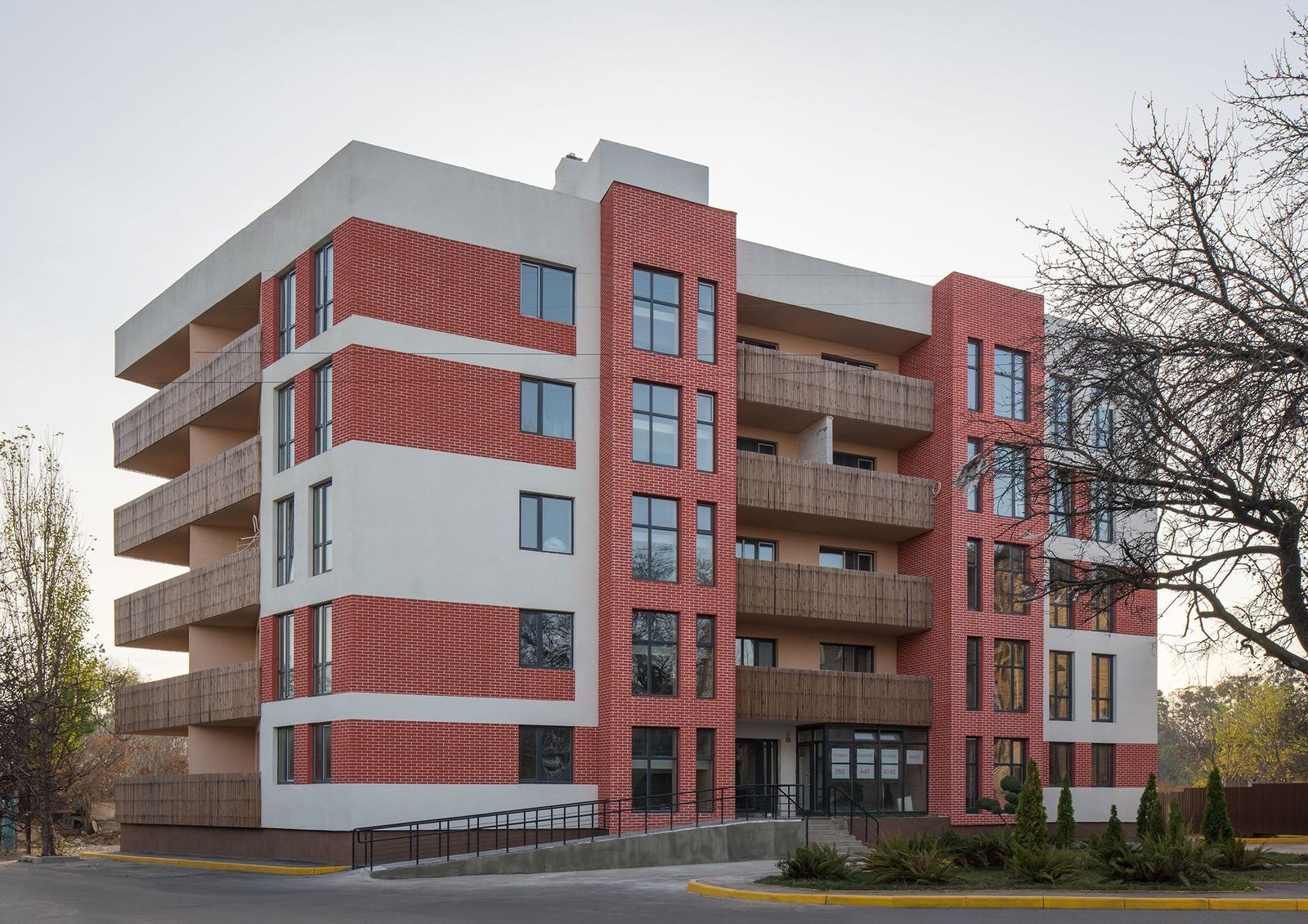 Два небольших пятиэтажных дома со светлой отделкой, открытыми лоджиями и декоративными элементами на фасаде — это про жилой комплекс Казацкий Гай. Благодаря своему расположению ЖК подойдет как сторонникам тишины и покоя, так и любителям активной городской жизни. Территория комплекса будет закрытой от посторонних, во дворе установят детскую площадку и многофункциональный спортивный комплекс.