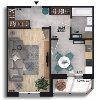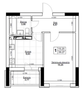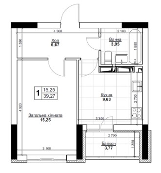 Планування 1-кімнатні квартири