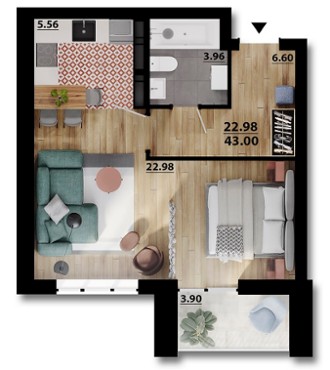 від 31.02 м² до 46.38 м²
