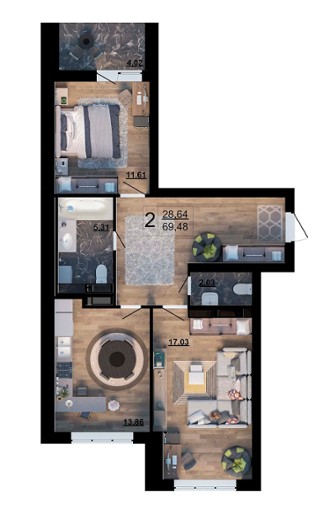 від 59.28 м² до 71.17 м²