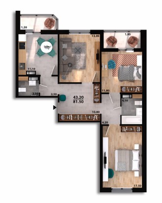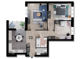 від 81.3 м² до 86.63 м²
