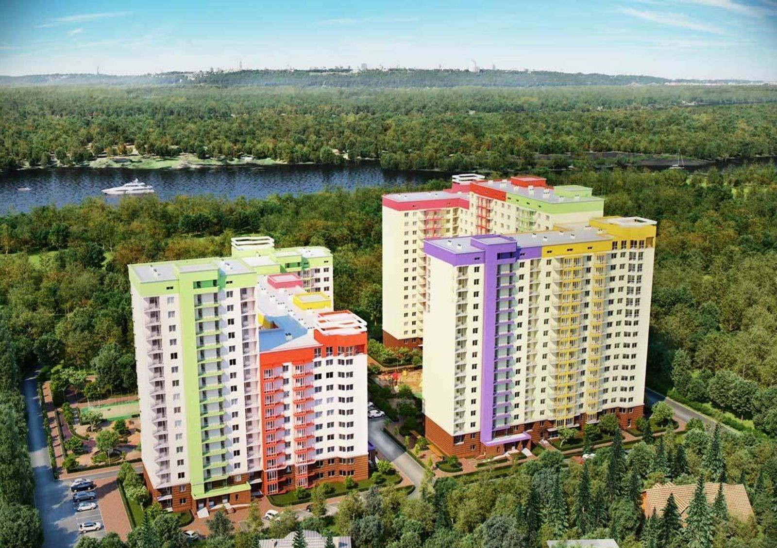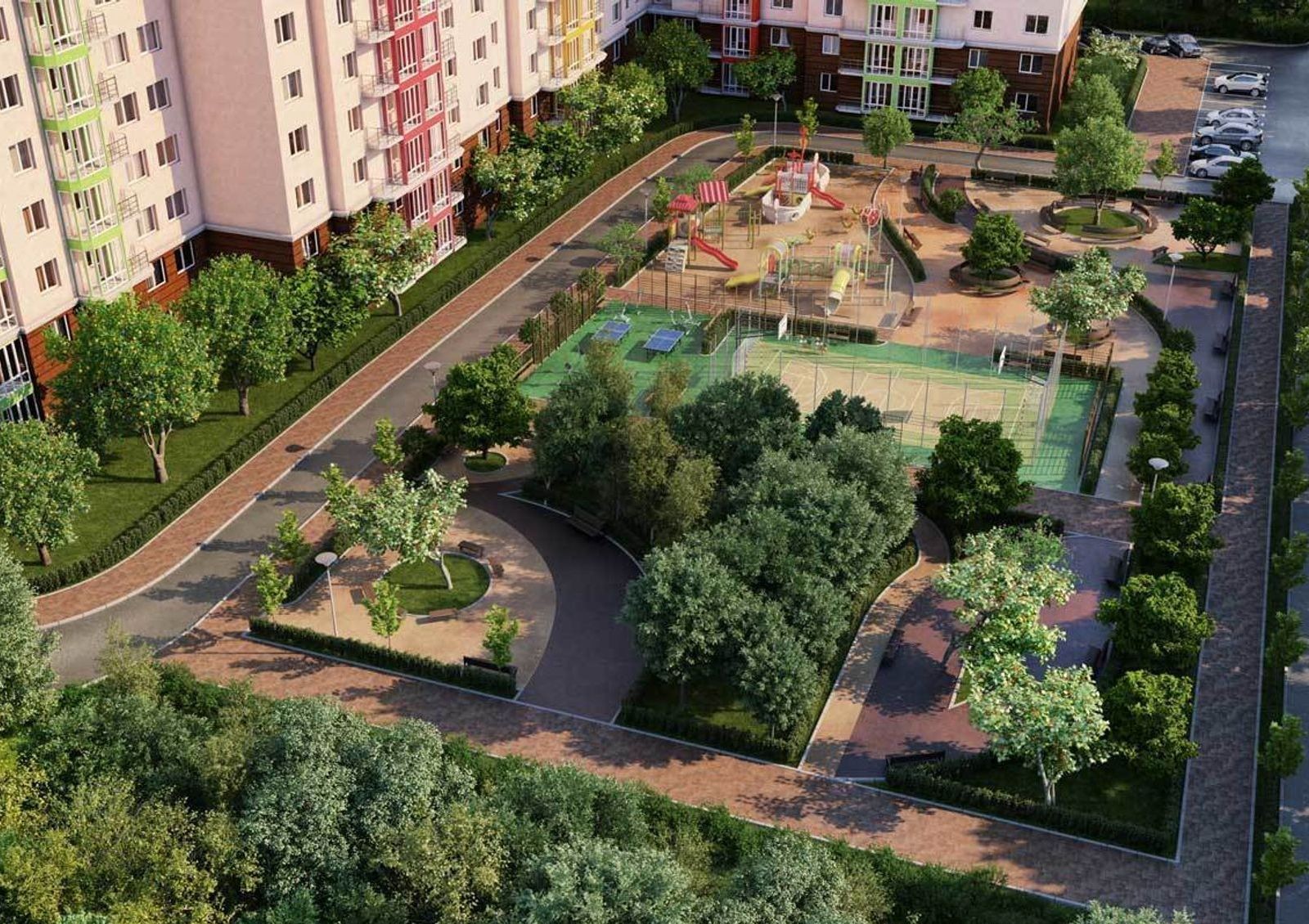 ЖК «Садовый» расположен в рекреационном районе Киева — рядом Труханов остров с его пляжами, местами активного отдыха и маршрутами для пеших прогулок. Отдохнуть от шума столицы можно и возле дома: у комплекса своя большая озелененная придомовая территория.