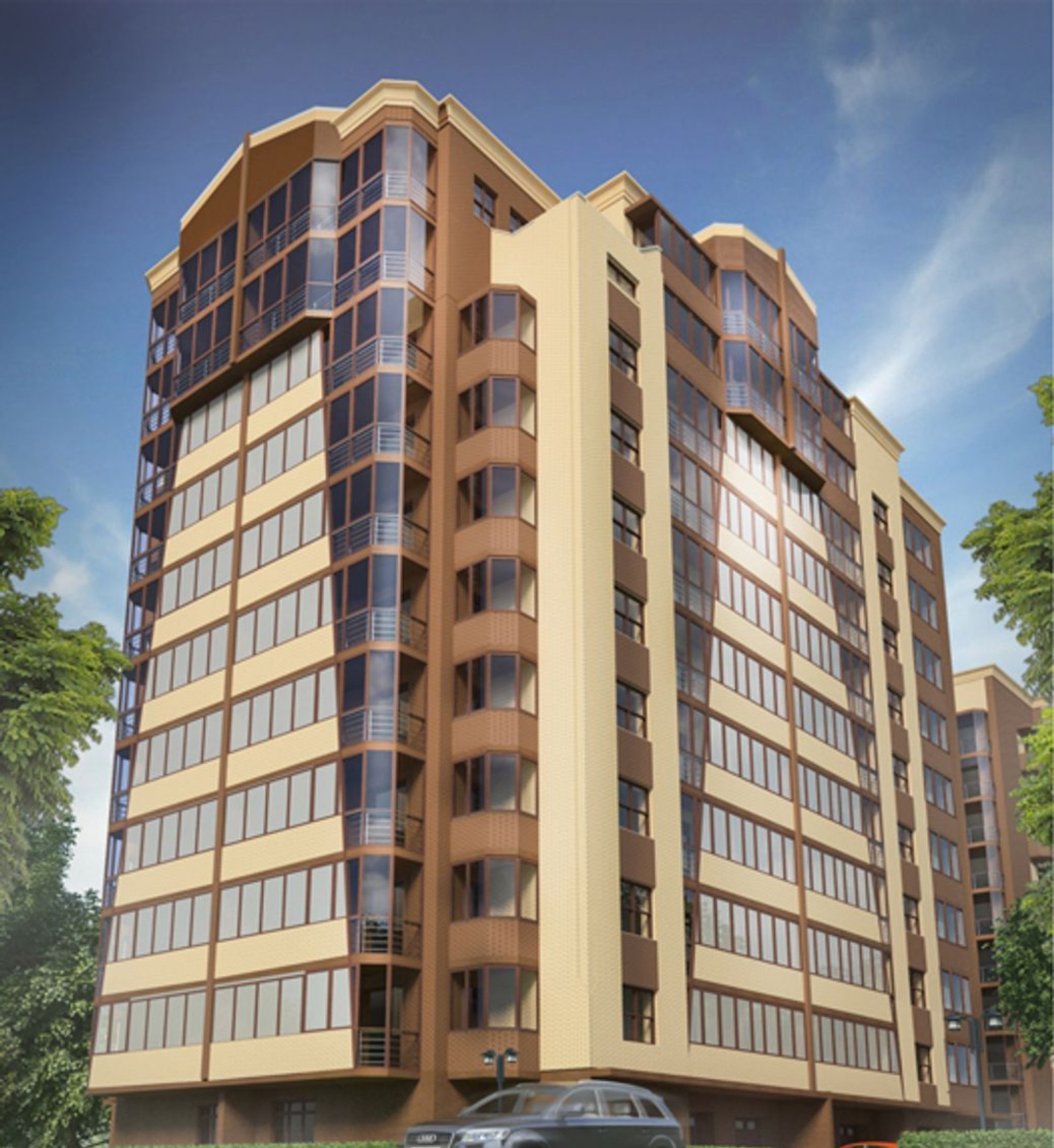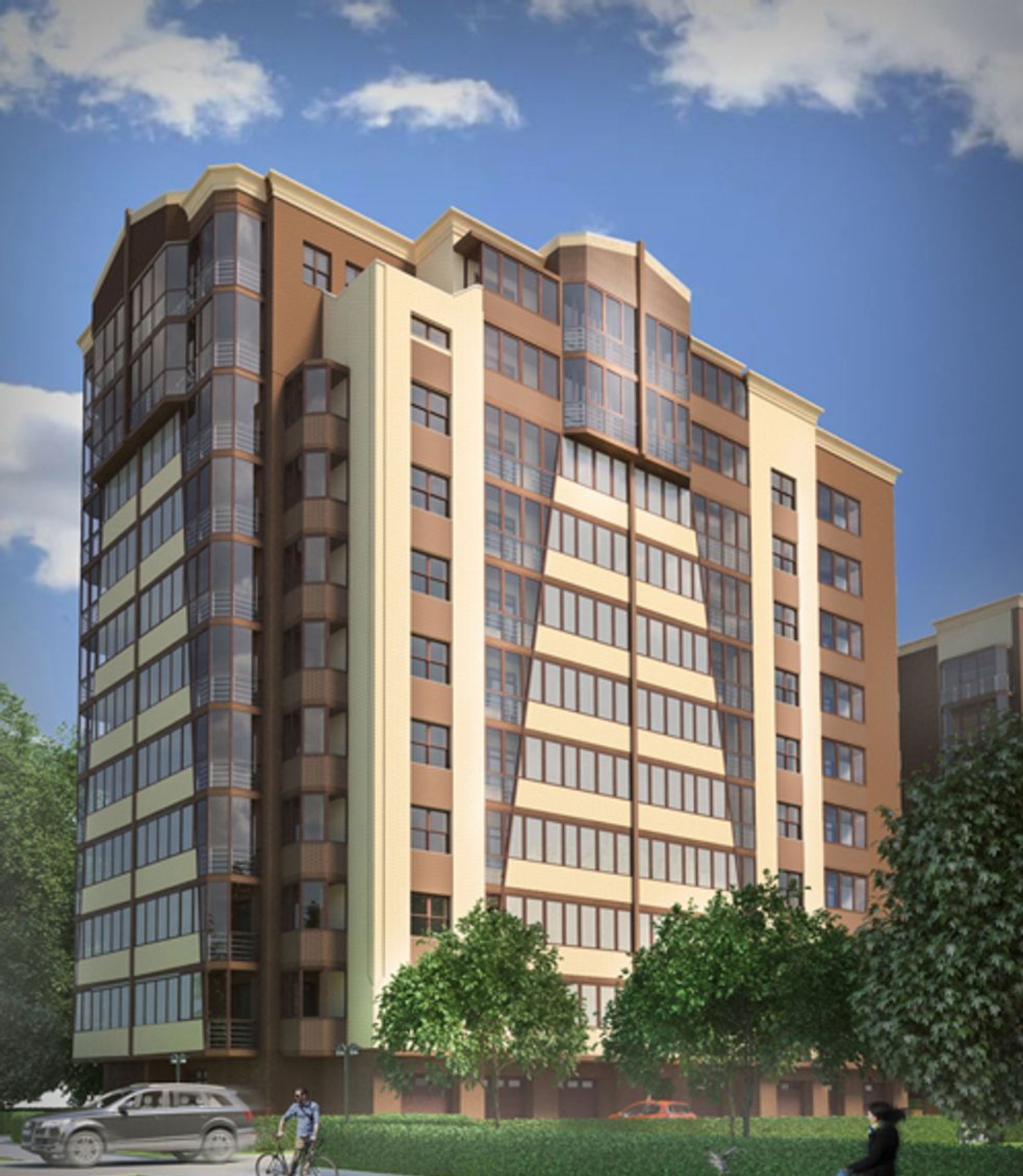 В течение хода строительства десятиэтажного комплекса тщательно проверяются все материалы на соответствие современным нормам надежности. Внешние стены возводятся из кирпича, утепляются они пенопластом.