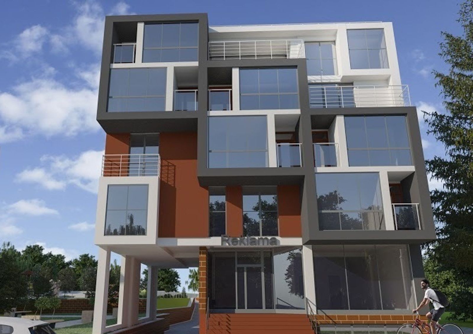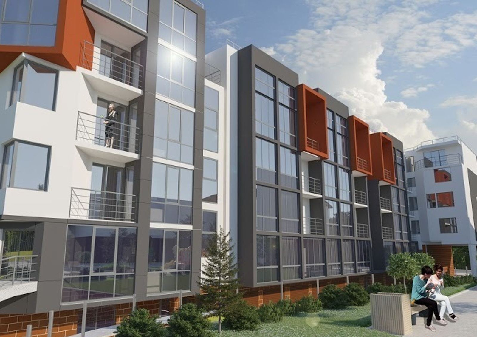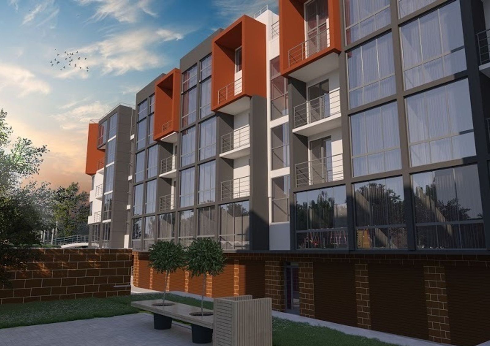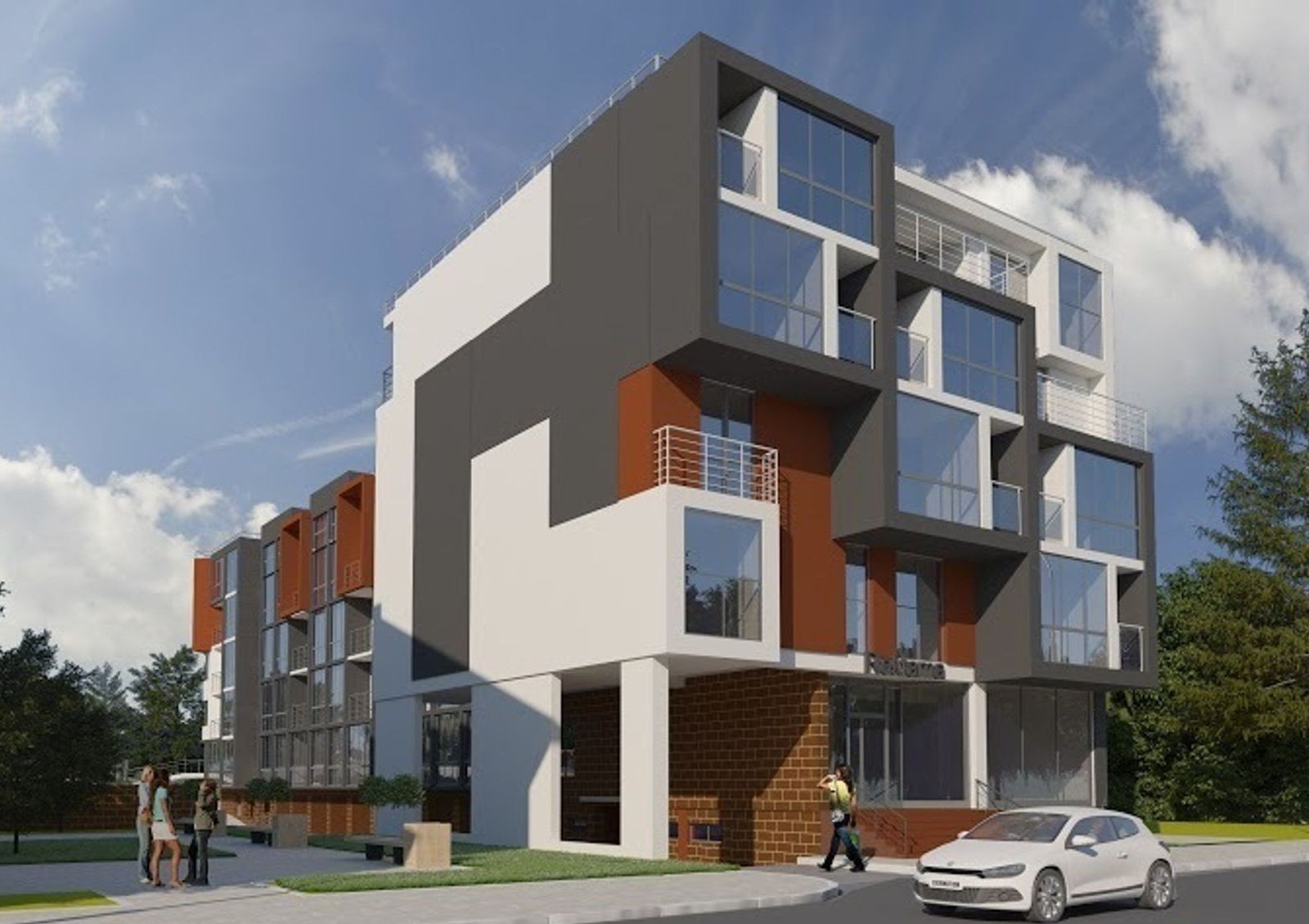 Сам комплекс представляет собой два блока высотой 5 этажей, в которых первые этажи отведены под коммерческую недвижимость, цокольный уровень занимает гаражный комплекс и кладовые для нужд жильцов. На четвертом этаже спроектированы комфортабельные двухуровневые пентхаусы.