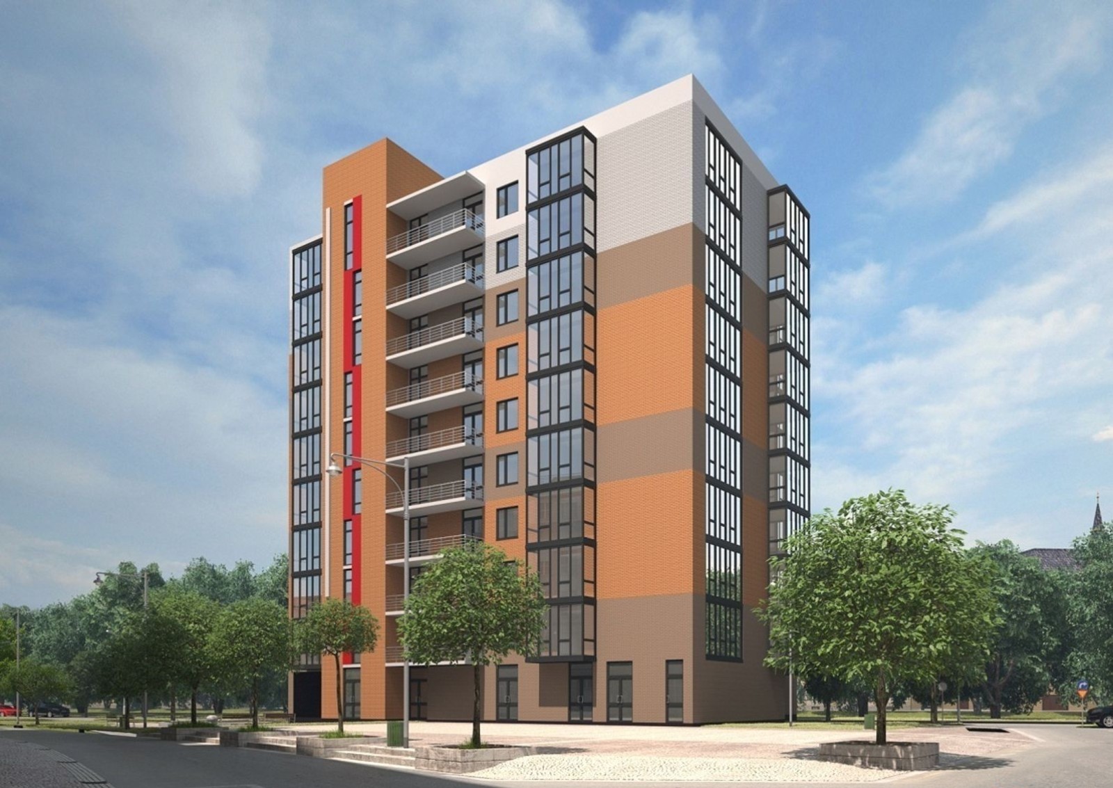 На десяти этажах разместились одно-, двух- и трехкомнатные апартаменты, планировки которых представлены в нескольких вариантах. В помещениях предусмотрена стяжка пола и оштукатуривание стен, установка окон и дверей, разводка электропроводов. Обогрев квартир будет осуществляться благодаря индивидуальной системе отопления.