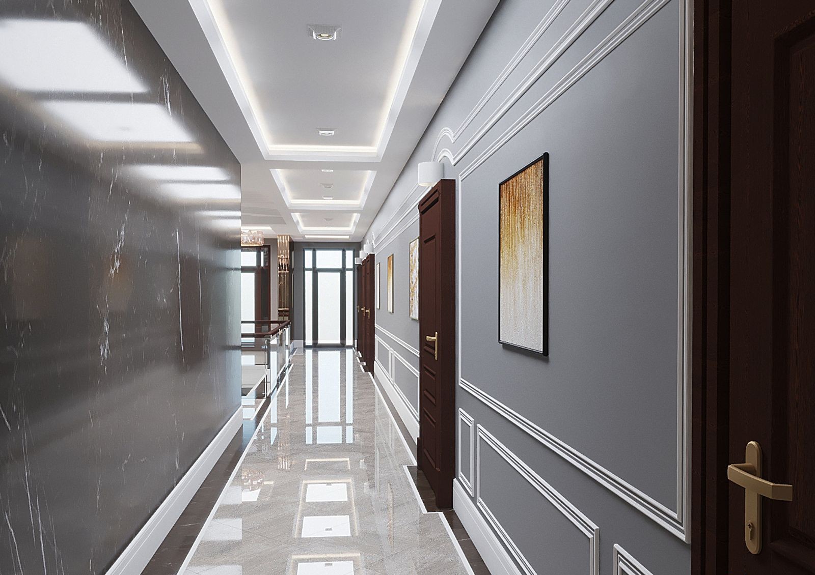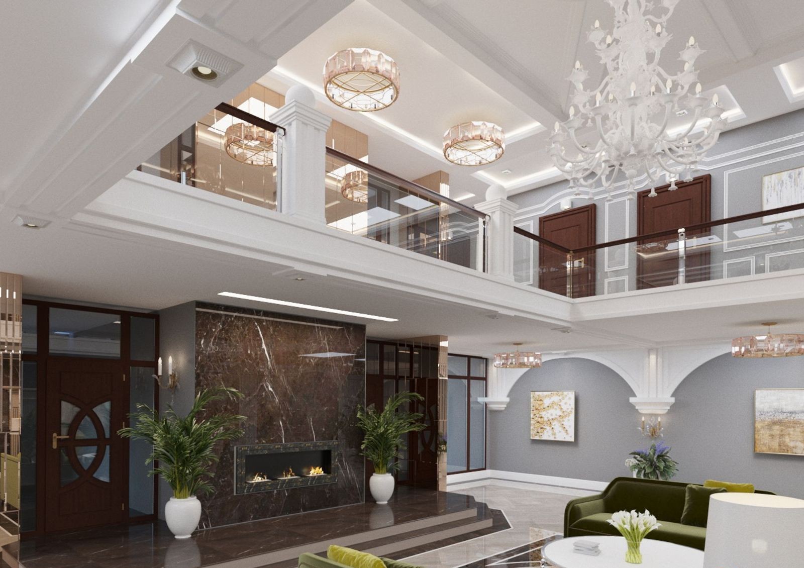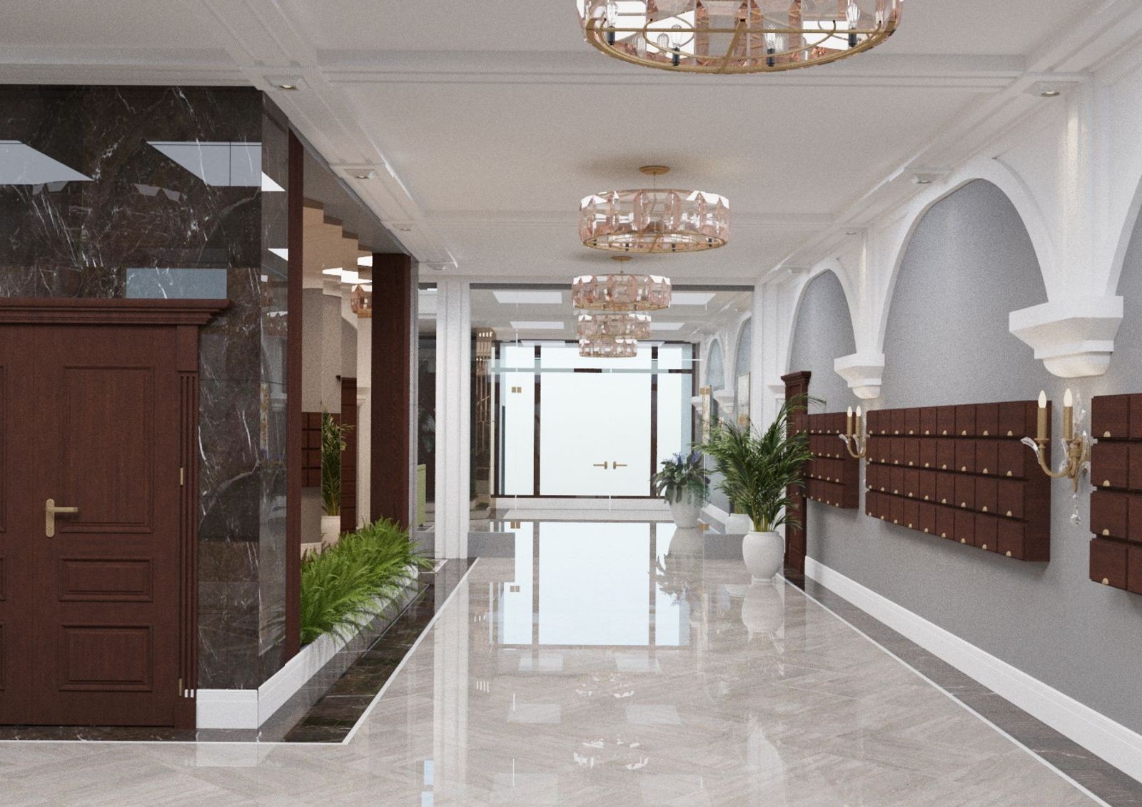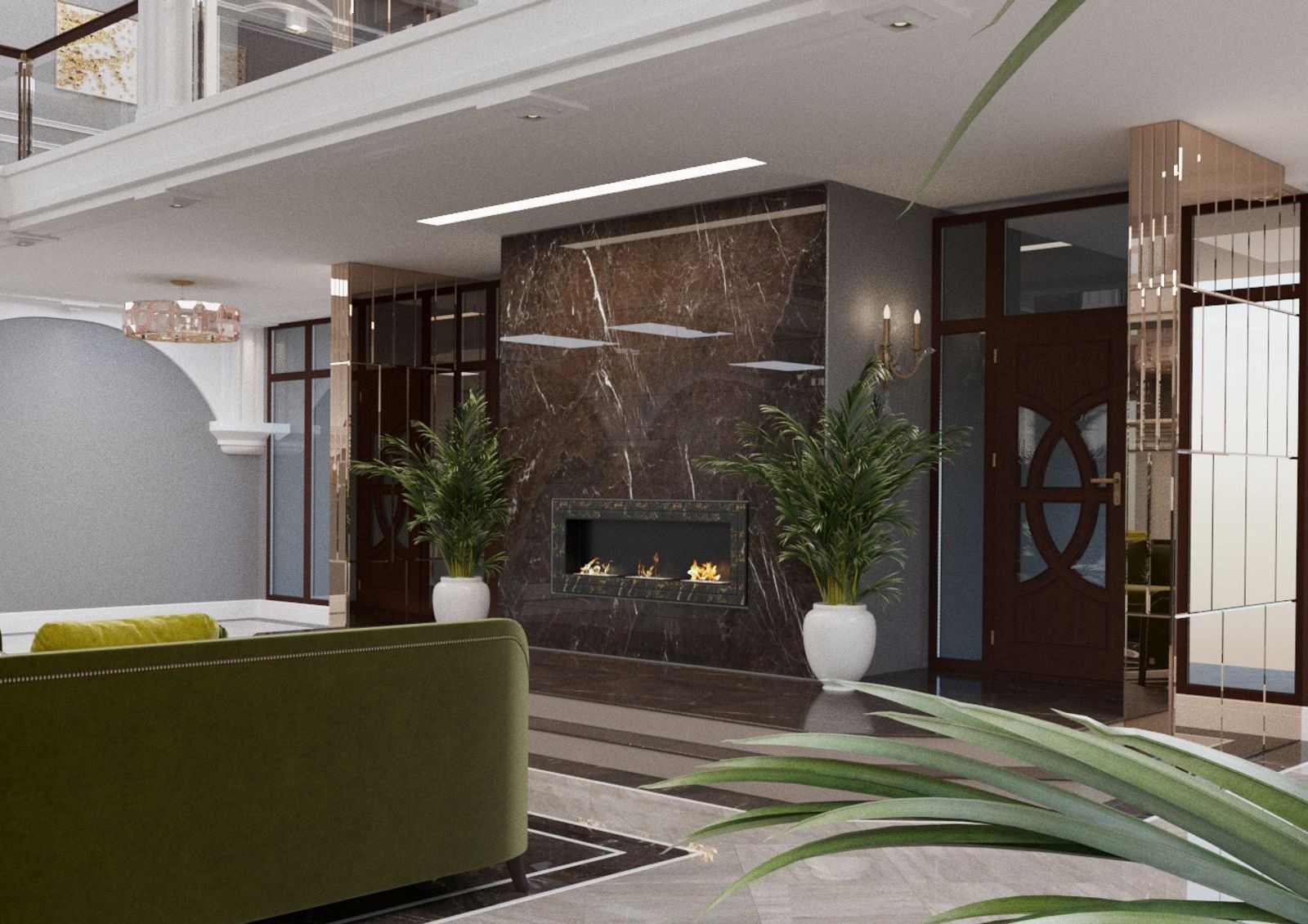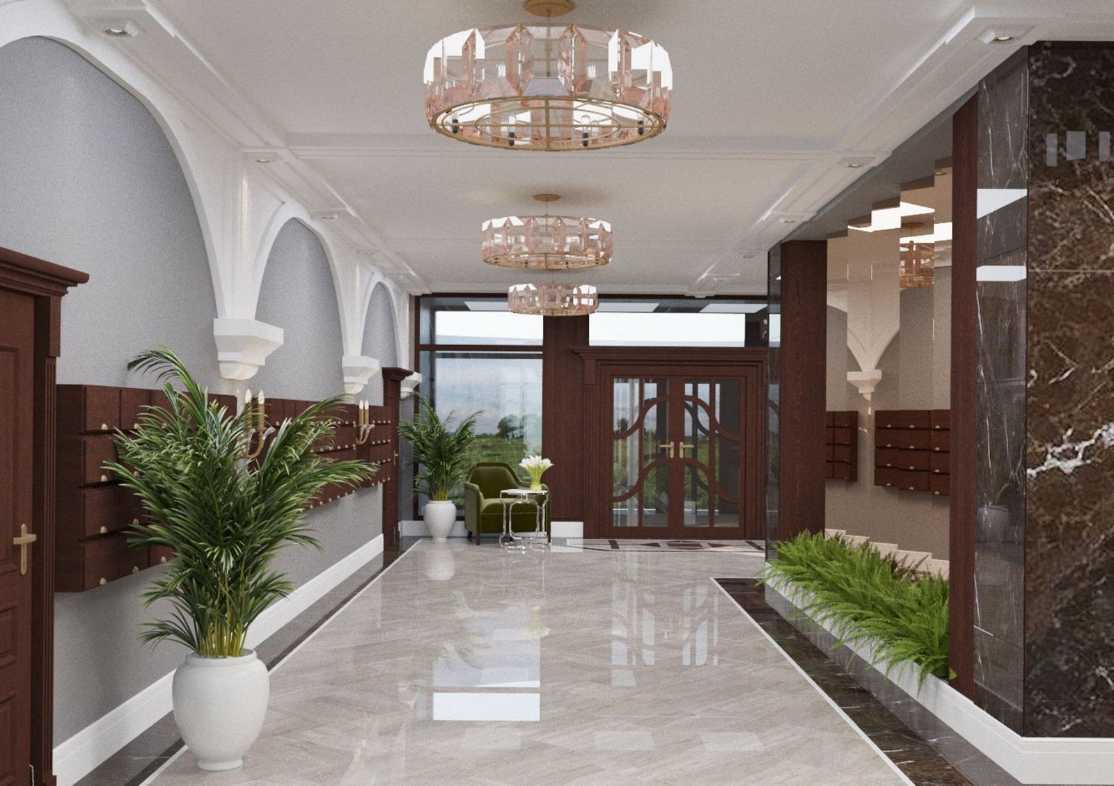 Предусмотрены лаунж зоны на каждом этаже и консьерж-сервис при входе, а спуститься в паркинг можно на тихоходном лифте.
