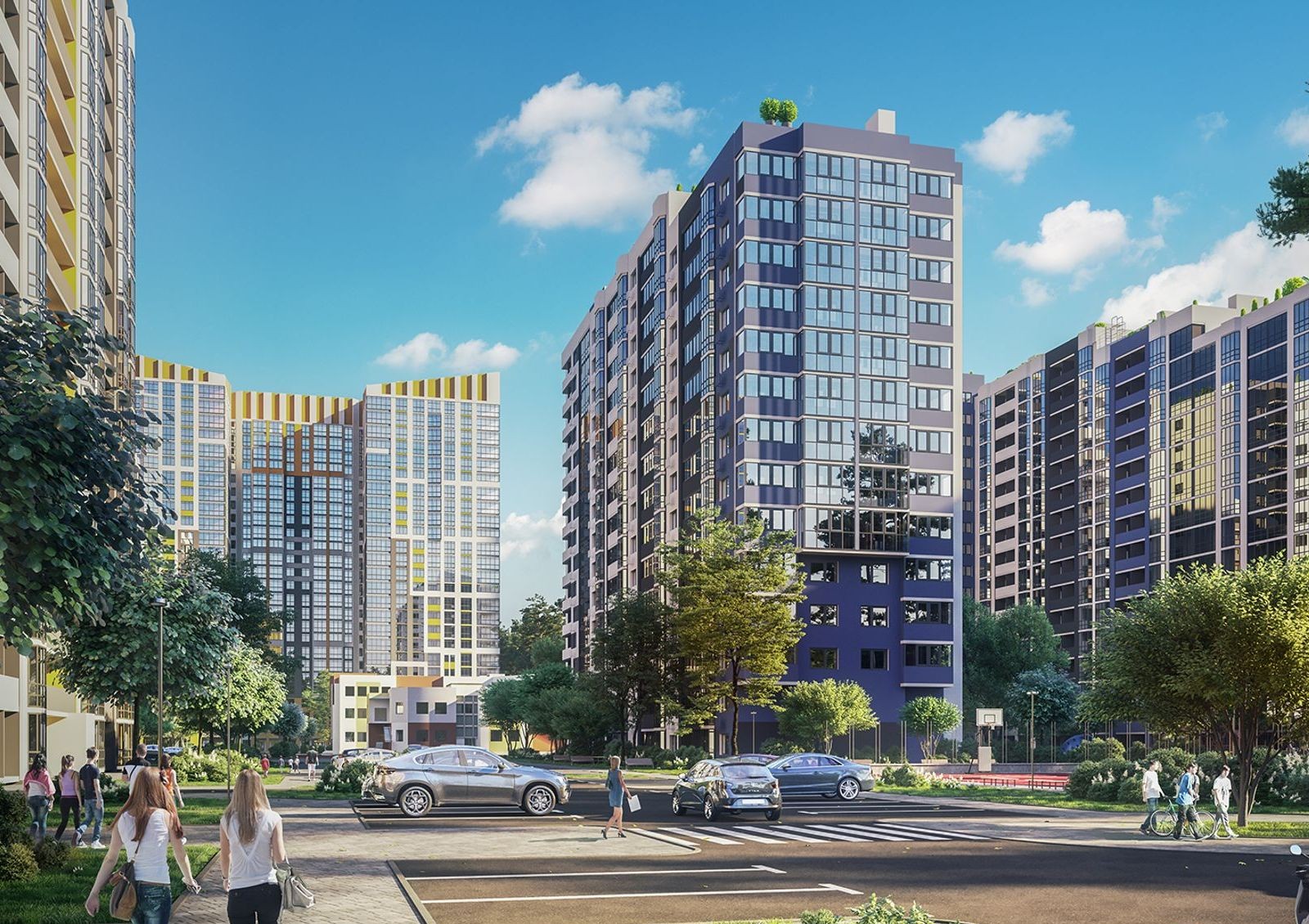 ЖК «Чаривне Мисто» — мини-городок между лесом и парком. Дворы «П»-образной формы будут закрыты для машин, а внутри оборудуют детские игровые зоны, спортивные тренажеры, озелененные аллеи для прогулок и места для отдыха.