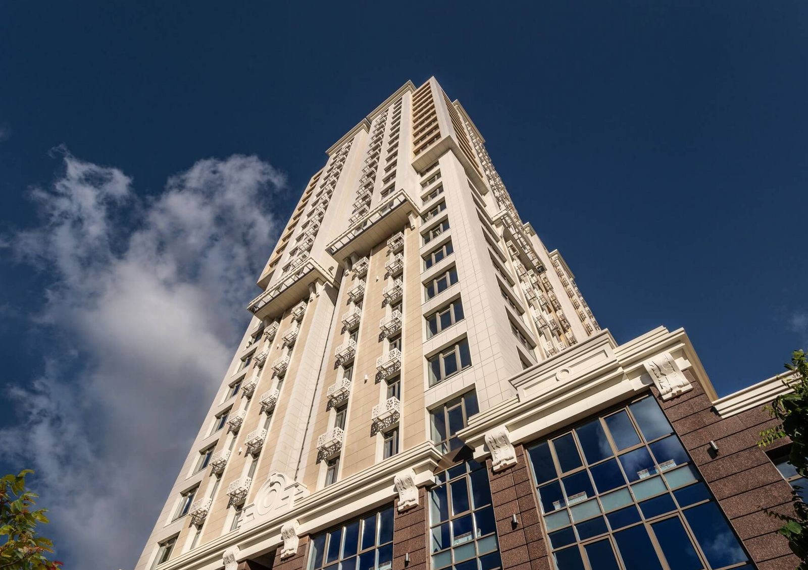 «Тридцать восьмая жемчужина» — уголок Одессы в центре Киева. В жилой комплекс застройщик привнес колорит архитектуры центральной части Одессы — светлые тона отделки песочных цветов, плиты из натурального камня, декоративные элементы с отсылками к классицизму.