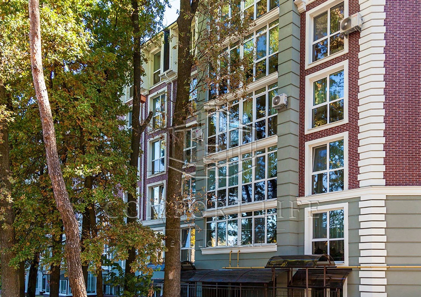 Двухсекционное пятиэтажное здание возведено из кирпича, в ходе строительства были использованы материалы, соответствующие современным мировым качества. Его фасад надежно утеплен плитами пенопласта, облицован лицевым кирпичом и украшен декоративными элементами.