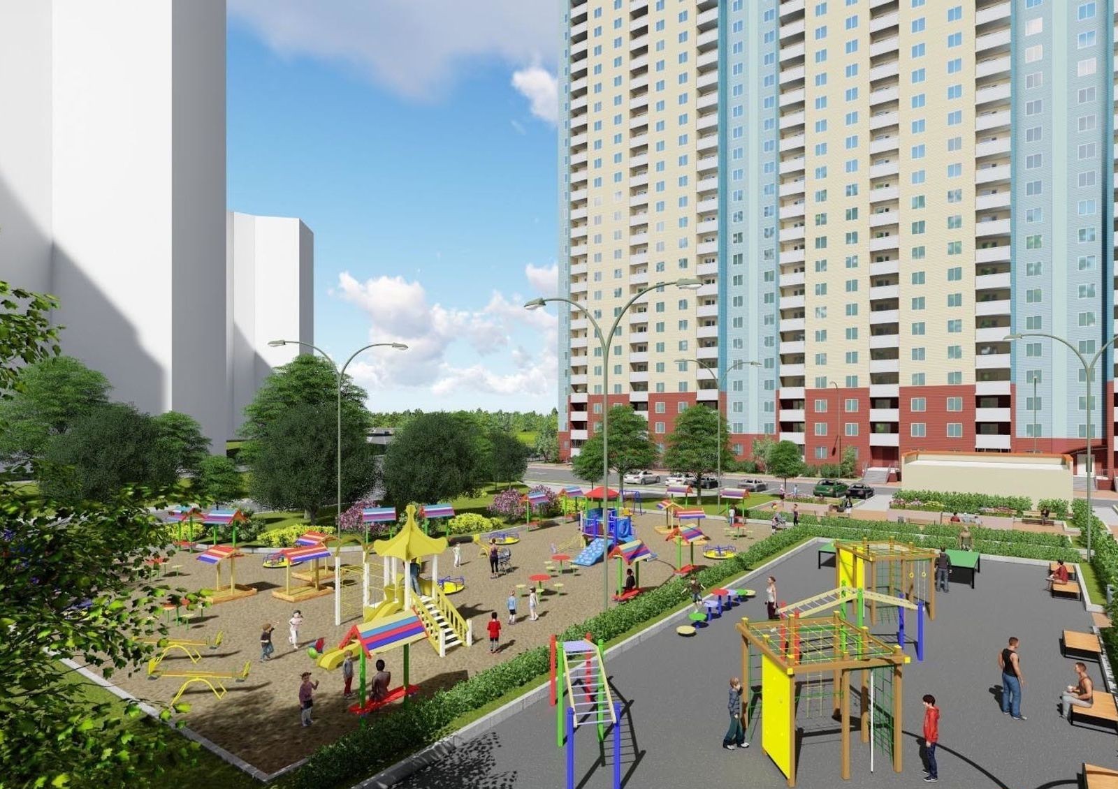 Стоимость жилья в новостройке ощутимо ниже среднего уровня цен по Киеву. Планом застройки предусмотрено сооружение гостевого паркинга, зоны отдыха, спортивной площадки с теннисными столами и детской игровой площадки.