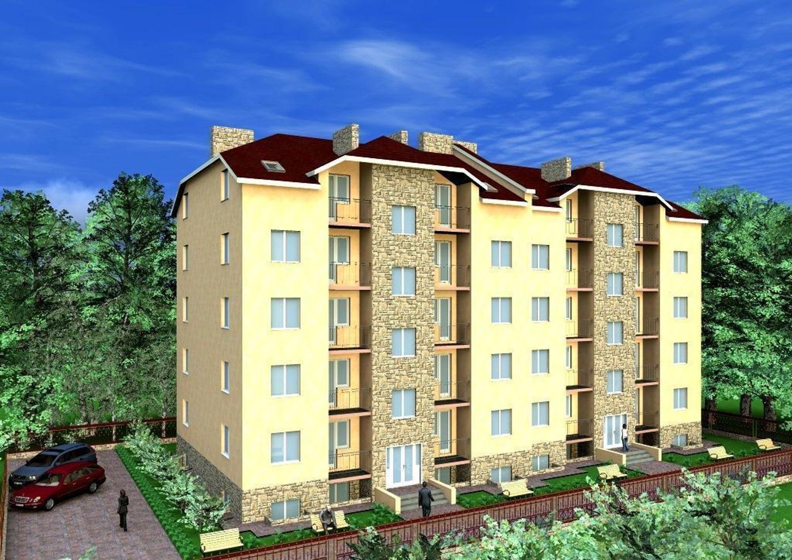 Все несущие конструкции и другие части здания выполнены из высококачественного красного кирпича. Фасад утеплен слоем пенопласта – эффективным теплоизолятором. Выполнена отделка здания декоративной штукатуркой.