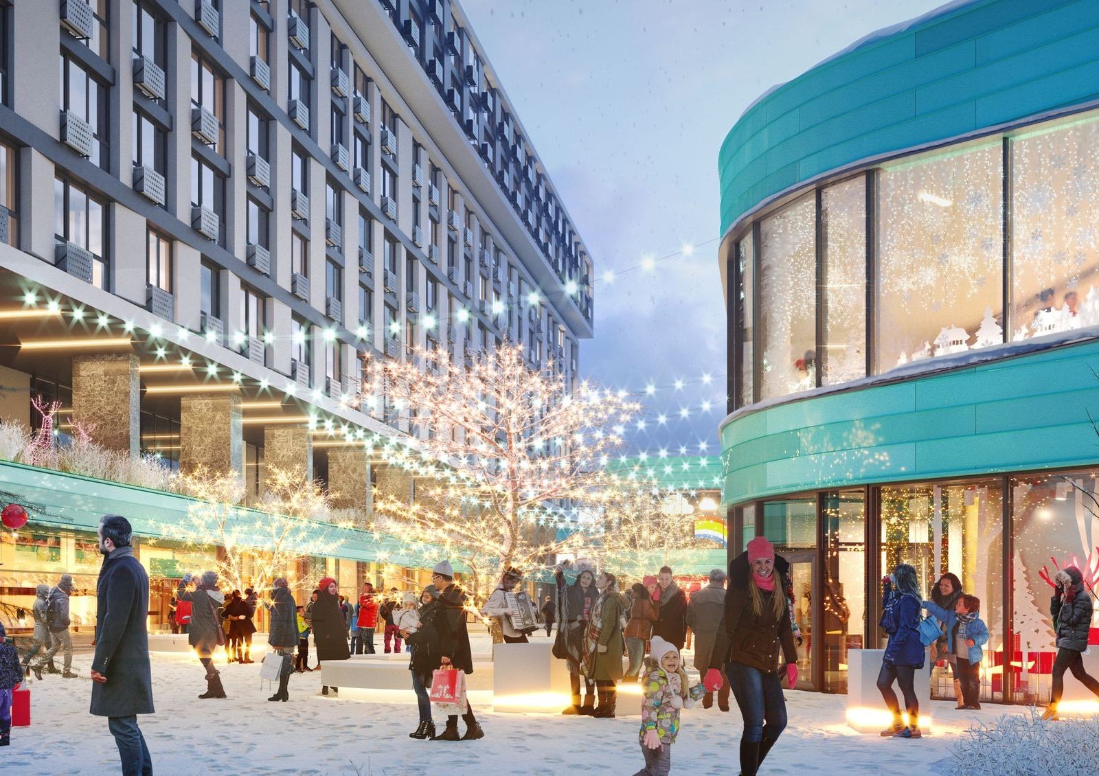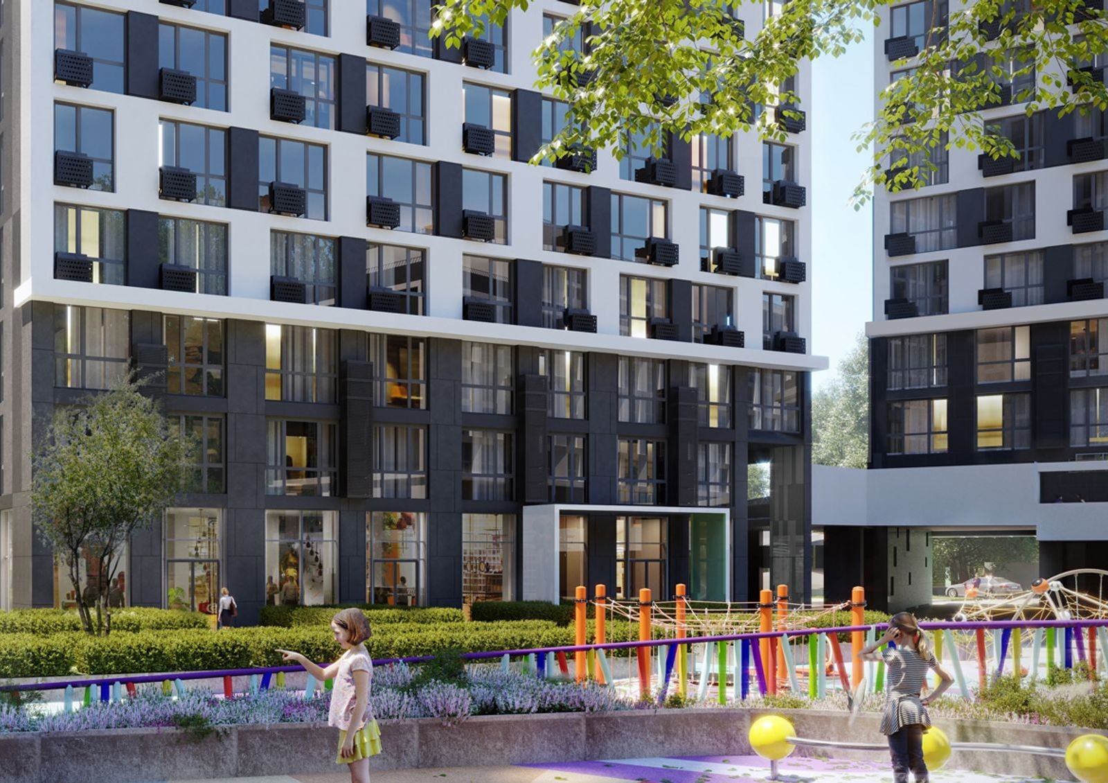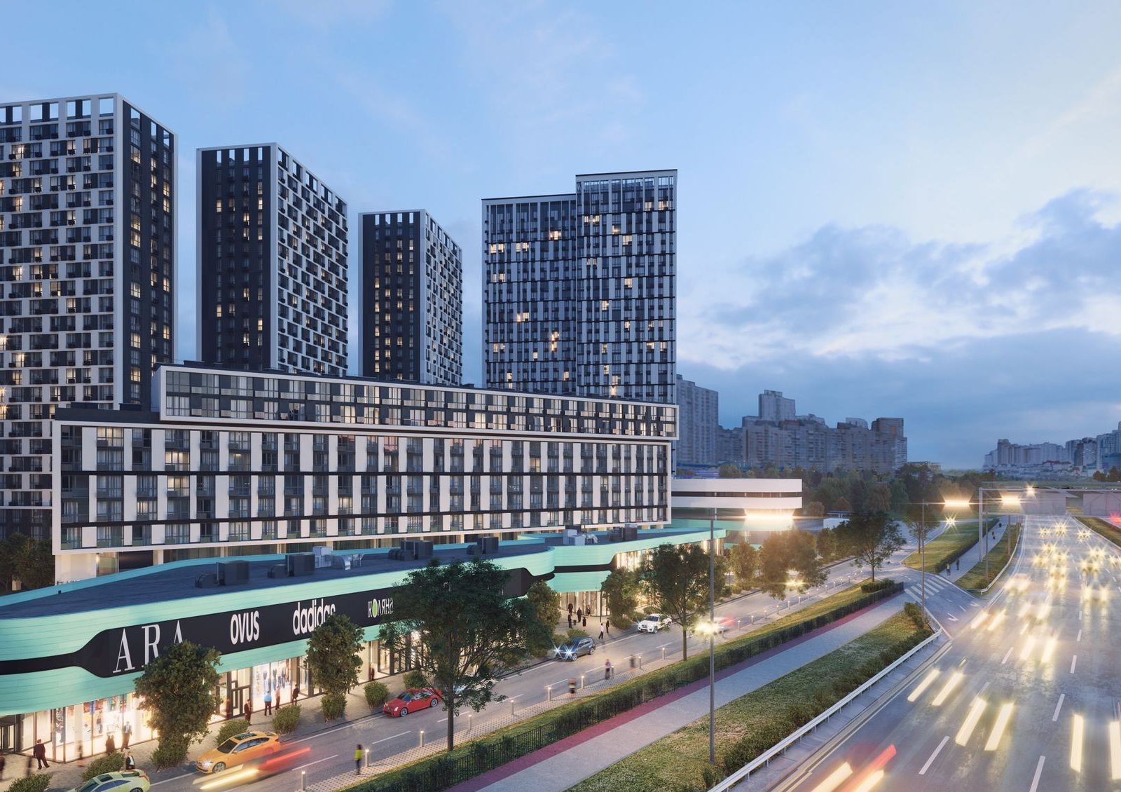 В проект развития внутренней инфраструктуры «Славутич 2.0» входят коммерческие помещения на первых этажах домов и строительство торгового центра на территории комплекса.