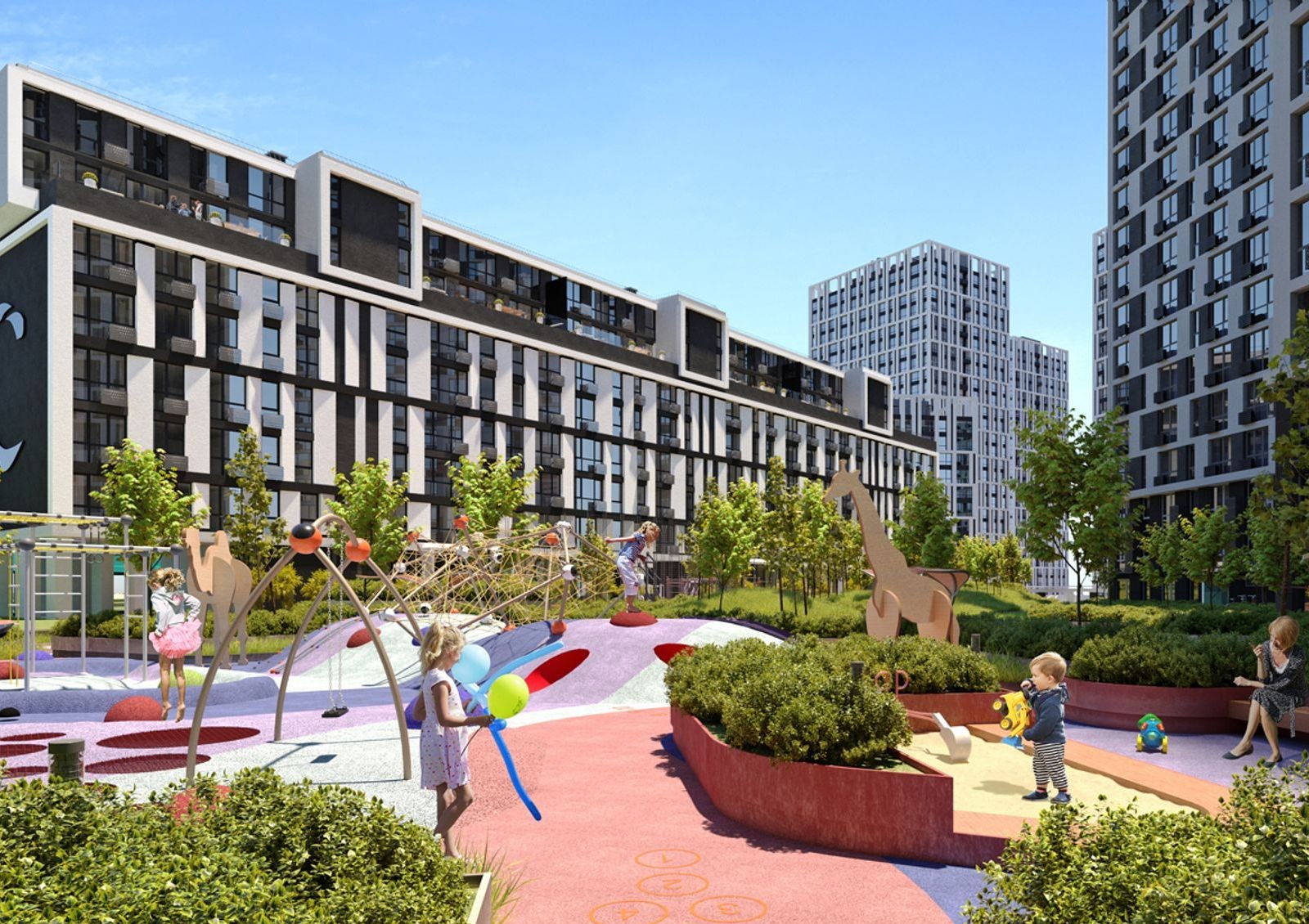 Чтобы семьи с маленькими детьми не искали детское учреждение в округе будет открыт детский садик на территории комплекса. До детских садов микрорайона Осокорки на авто ехать 5-10 минут. Для детей постарше рядом школы №314, №309 — 8 минут езды, до школы №329 — 10 минут и 6 минут езды до Киевской инженерной гимназии.