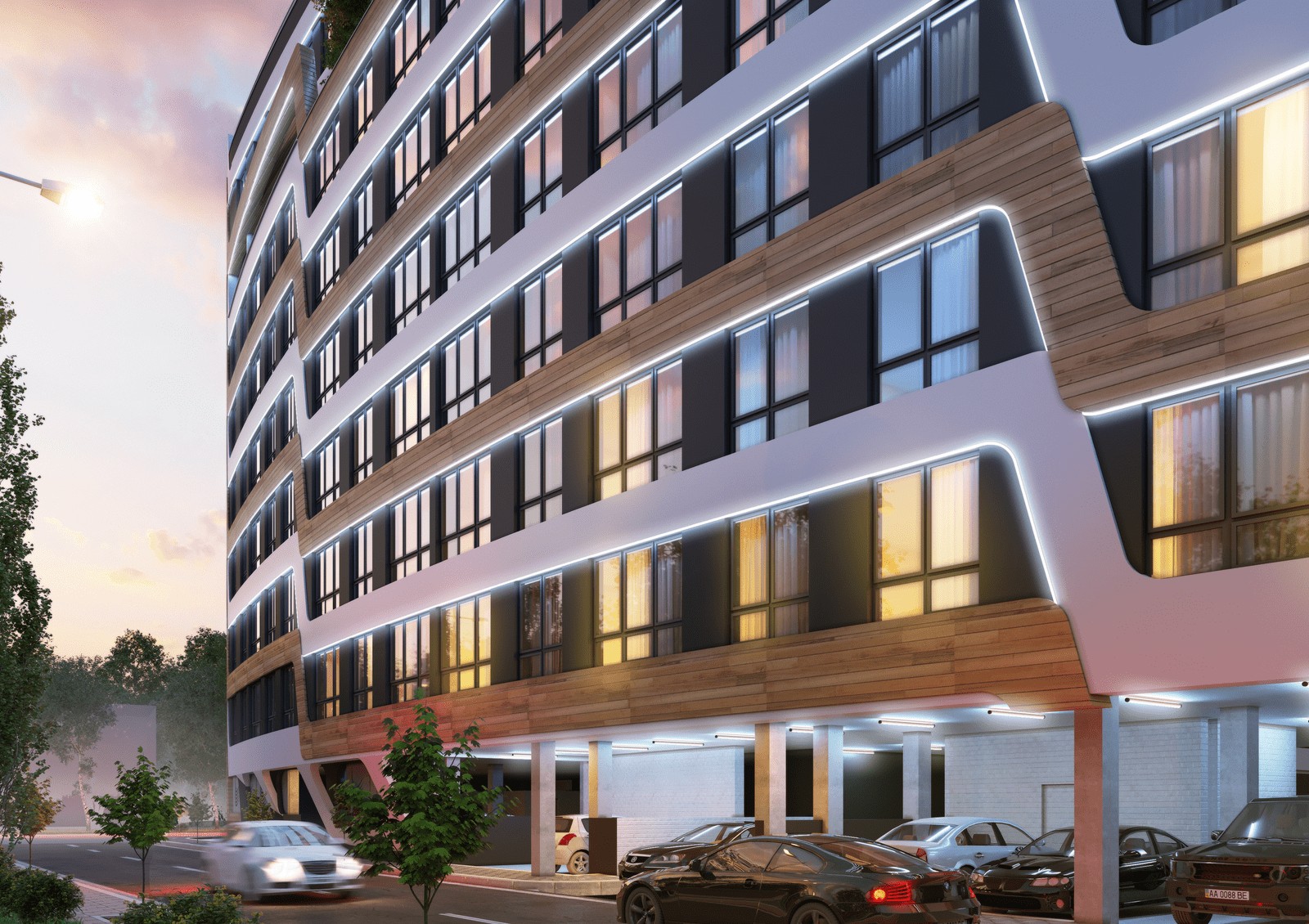Жители комплекса имеют возможность пользоваться подземной и наземной парковками, на свой этаж можно подняться на скоростном лифте.
