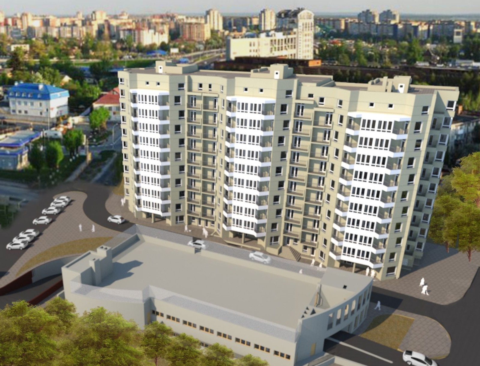 Новый комплекс состоит из одного десятиэтажного кирпичного дома, в ходе строительства которого используются сертифицированные современные материалы высокого качества. Плоская кровля здания, надежно защищенная высококачественным рубероидом, избавляет его жителей от опасности падения с крыши снега и льда в зимнее время.