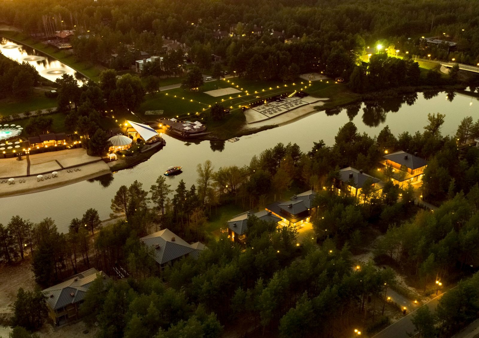 Коттеджный поселок расположен прямо на берегу Днепра в природном оазисе. Добраться до него можно и по реке, приплыв на катере – такая водная прогулка от Речного вокзала на Подоле займет 25 минут.