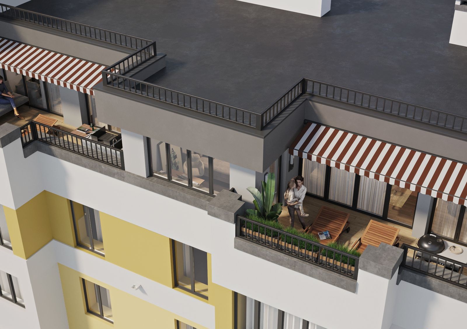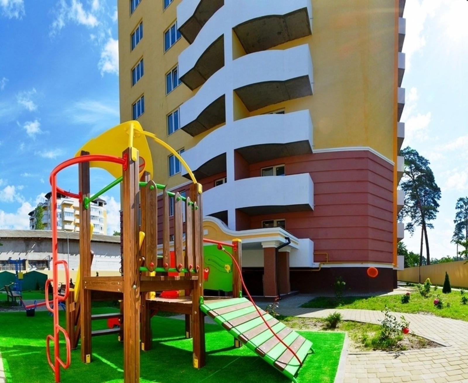 В корпусах организуется работа службы консьержа, на первом этаже имеется оформленный дизайнерами большой холл и специальные помещения для колясок и велосипедов. Сооружается двухуровневый надземный автопаркинг, современные детские площадки и мини-стадионы для занятия спортом. Устраиваются проезды и прогулочные дорожки, высаживаются деревья и разбиваются газоны.