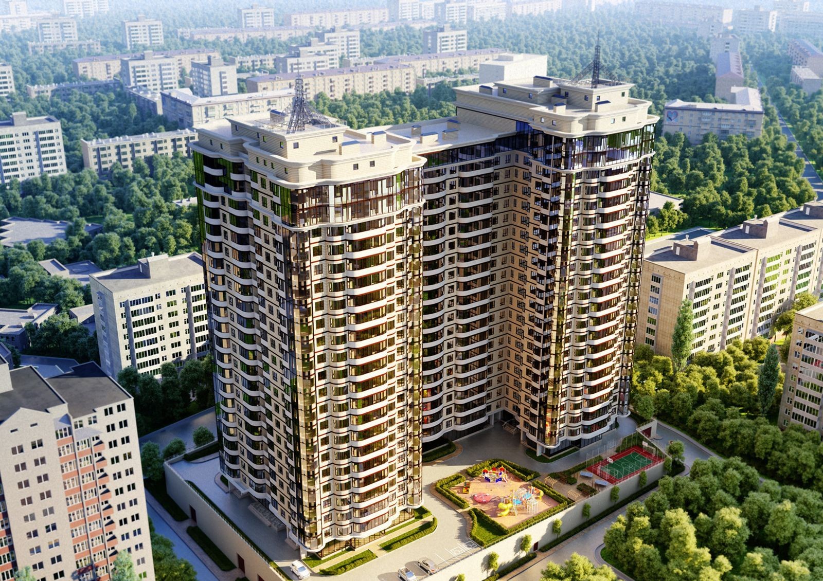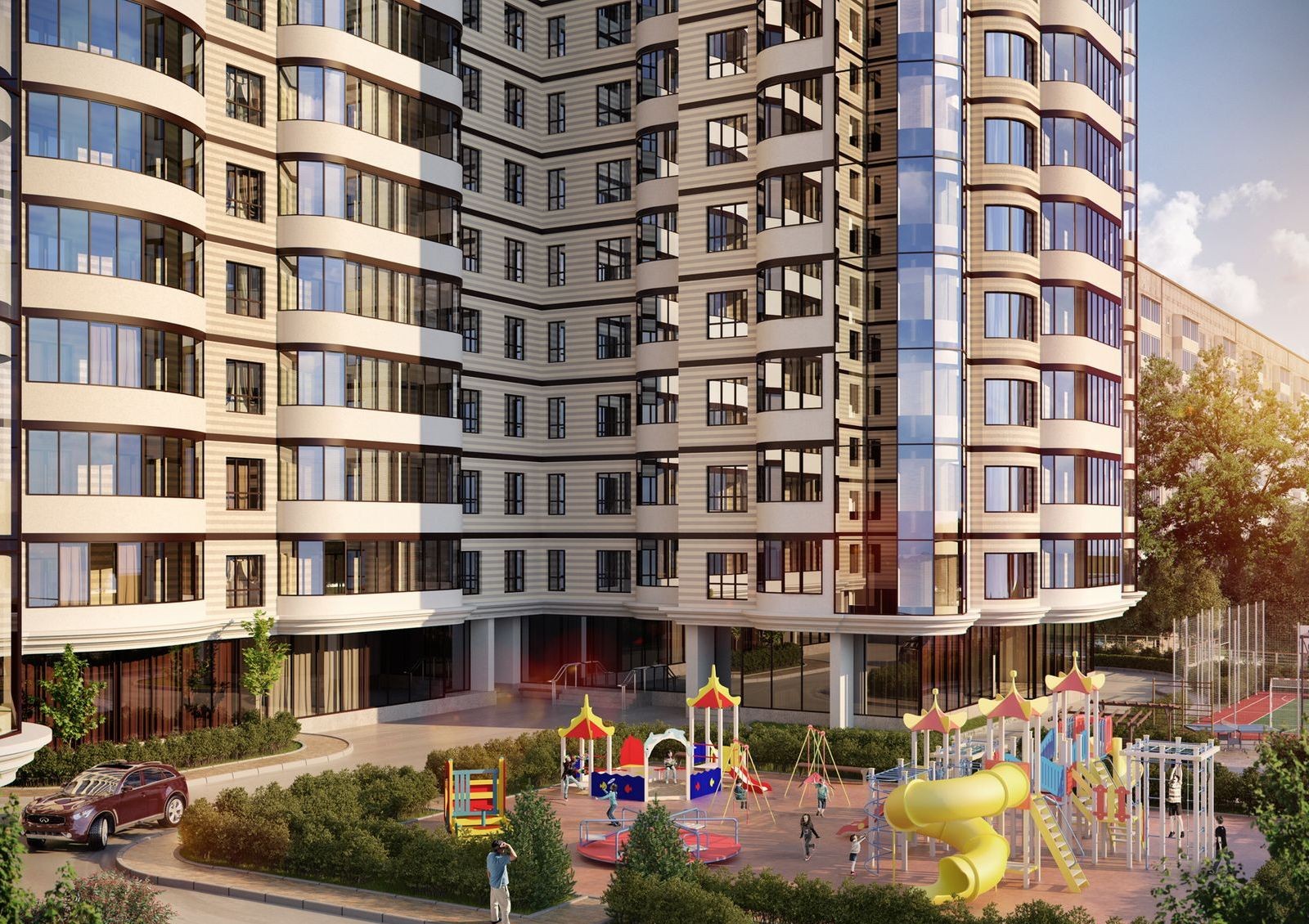В ЖК предусмотрены защищенные от посторонних спортивные и детские площадки, футбольное поле, а также подземный двухуровневый паркинг на 245 мест и гостевая парковка. Дом оснащен энергоэффективной системой отопления Danfoss, что позволяет регулировать температуру в каждой квартире и экономить на коммунальных платежах.