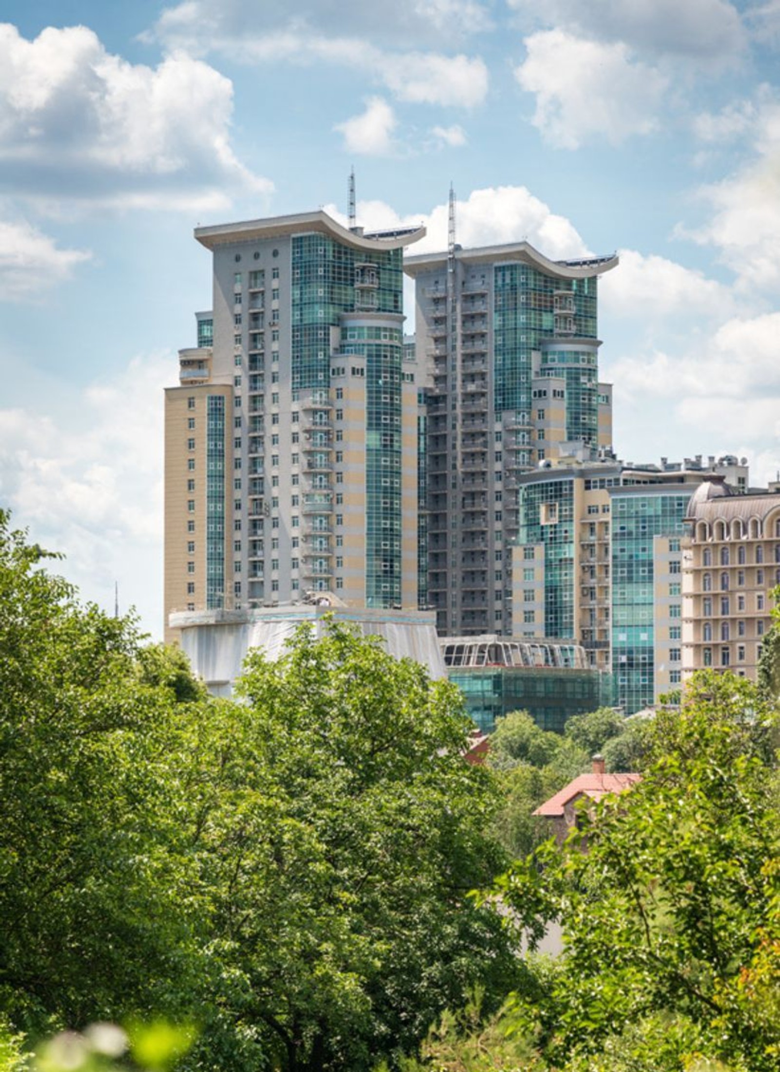 Жилой комплекс «Триумф» в Киеве расположен на вершине Зверинецкого холма в двухстах метрах от Ботанического сада. Из его окон открывается великолепная панорама столицы, жители квартир могут любоваться видами на Днепр.