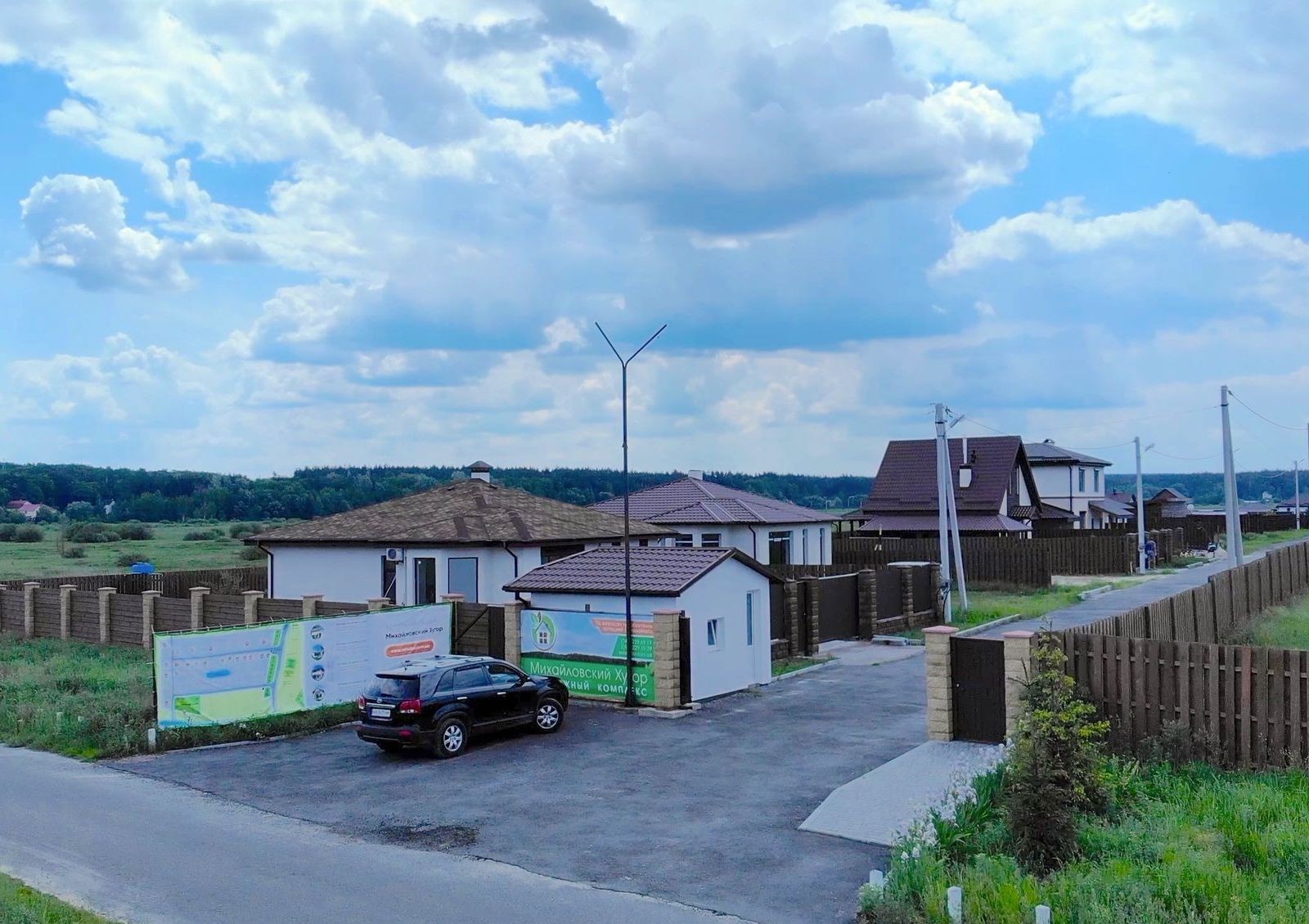 Дополнительным преимуществом для будущих жильцов станет то, что Михайловский Хутор – коттеджный городок закрытого типа. Для удобства граждан есть асфальтированный подъезд, на территории комплекса проведено озеленение. Возле каждого дома предусмотрено место для парковки. Рядом с комплексом открыт минимаркет, есть больница, школа, детский сад. Особенного внимания заслуживает местная природа – живописные пейзажи, каскады озер, Бучанское водохранилище, заповедные леса. Всего в 3 км от коттеджного поселка находится курорт Ворзель.