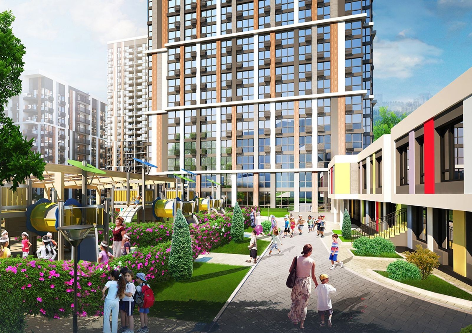 Для самых маленьких жильцов комплекса будет открыт детский сад. Также в радиусе 5-10 минут езды на автомобилей частный детский сад Newtone Kids, детский сад №728, детский сад №457 «Зайчик», школа-детский сад «Малятко», детские сады №325, №424, №643, детский сад с яслями №152 и частный детский сад «Монтессори на Липках». Выбор ближайших школ чуть меньше: 7 минут пешком до школы №130, 14 минут до школы №37 и школы «Интеллект», 5-10 минут езды до школы №181, №84, №78, №88 и британской интернациональной школы. Занять ребенка также помогут на дополнительных языковых курсах, художественной школе или спортивной секции.