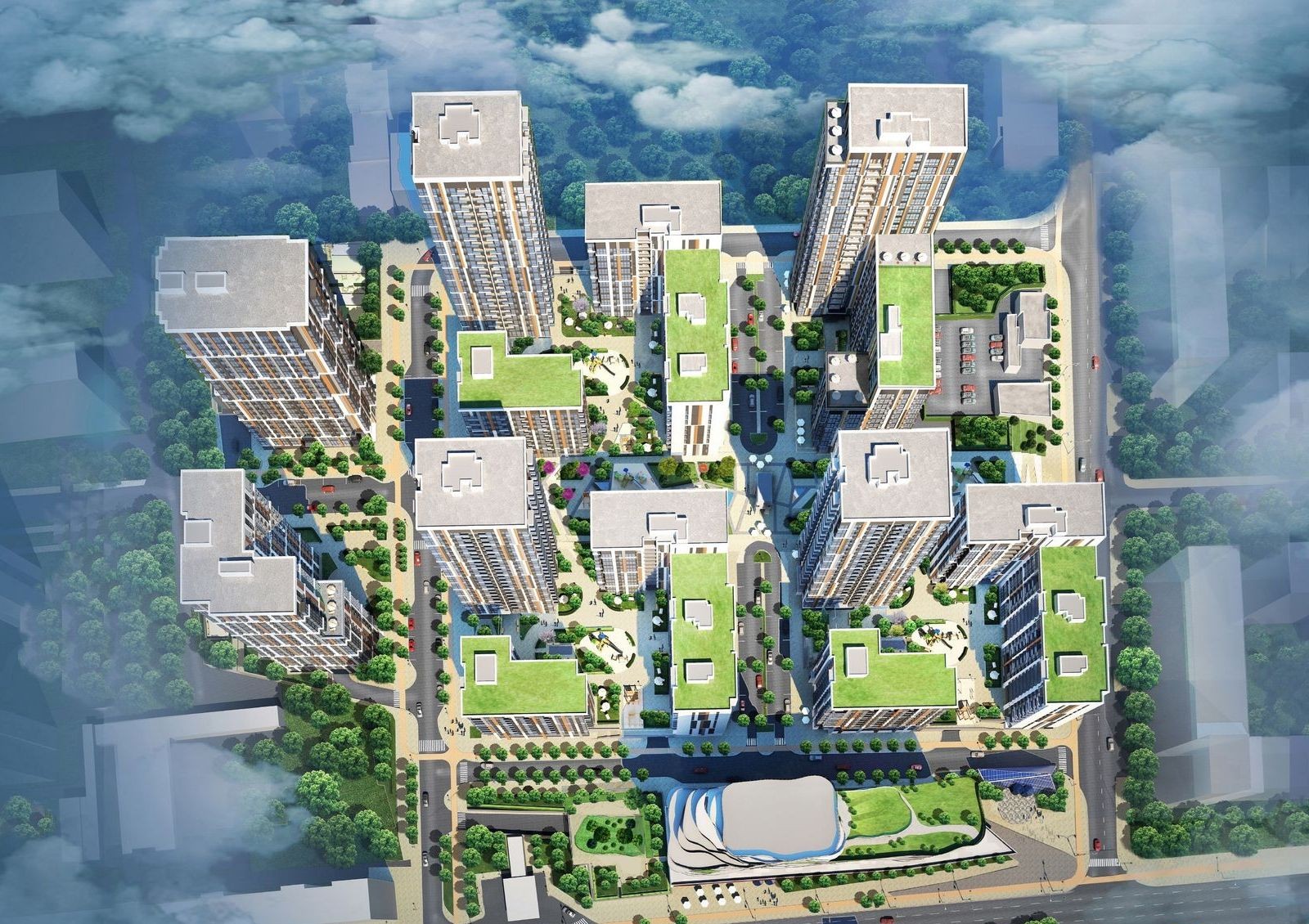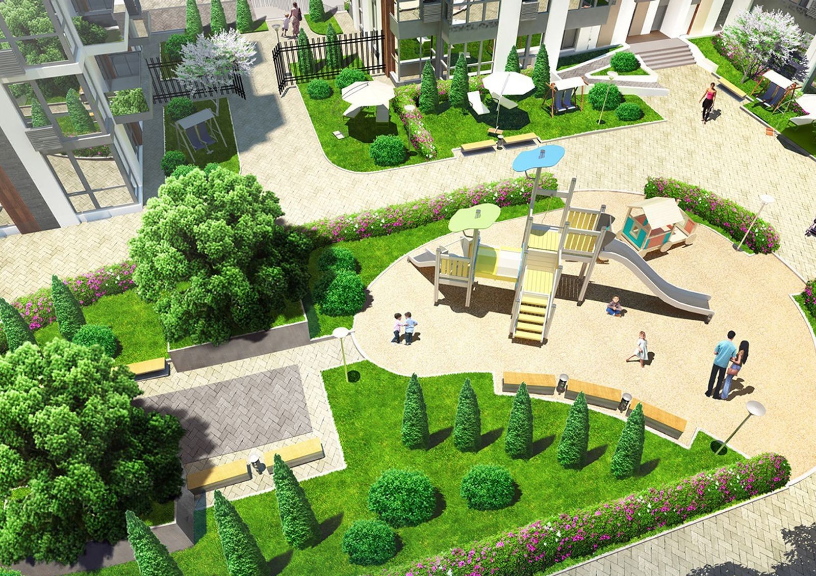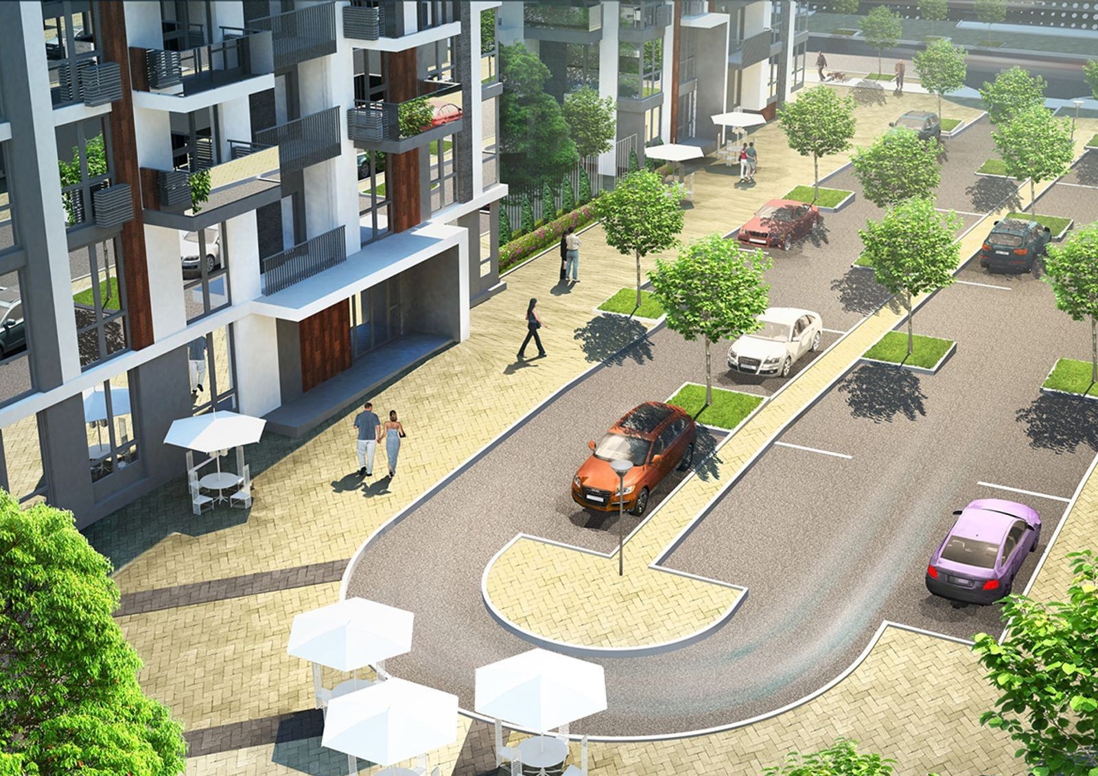 В жилой комплекс «Французский квартал 2» входит 3 мини-квартала в одном архитектурном стиле. Объединяют мини-кварталы парковая зона с аллеями для прогулок, вдоль которых высаживают молодые деревья и устанавливают места для отдыха. Придомовая территория некоторых мини-кварталов с детскими игровыми зонами и спортивными площадками будет недоступна для проезда автомобилей и прохода посторонних.