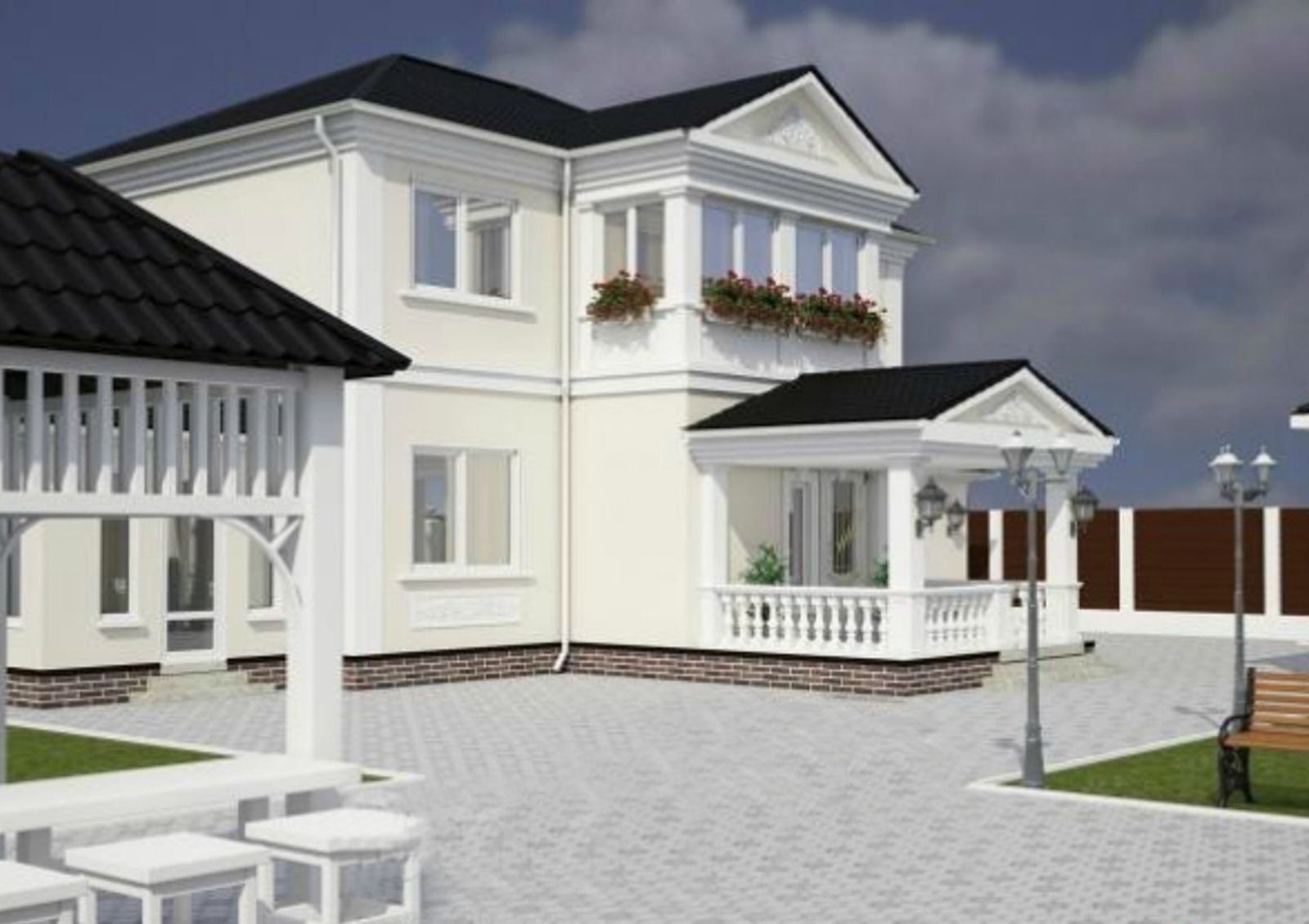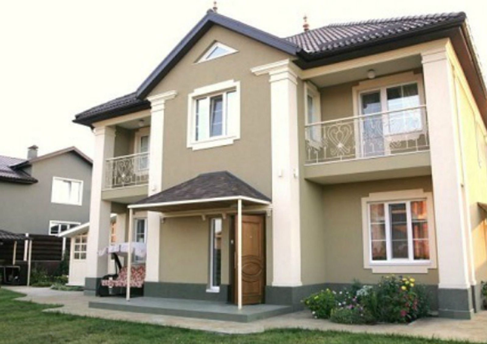 На приусадебной территории выровнен грунт согласно рельефу земельного участка. Каждый двор огражден двухметровым забором и оснащен крытой парковкой для авто.