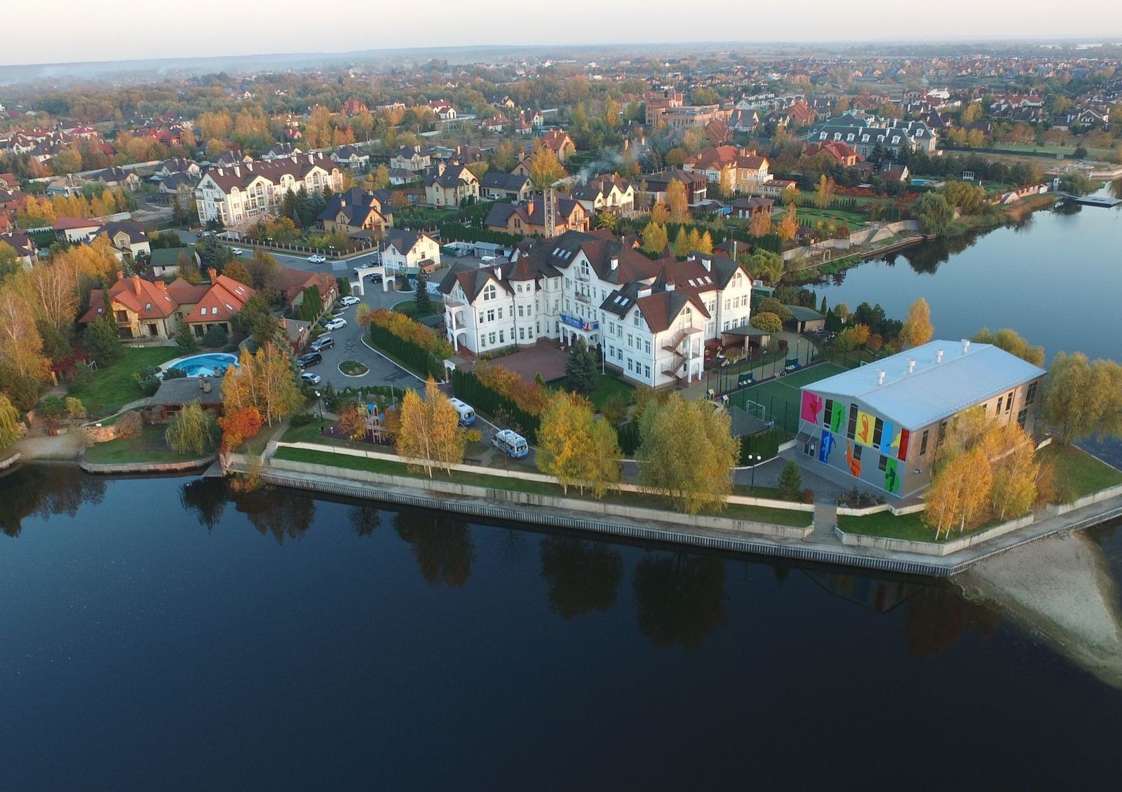 Городок построен в живописной местности – вдоль озера Золоче и разливов Днепра среди буйства природы.