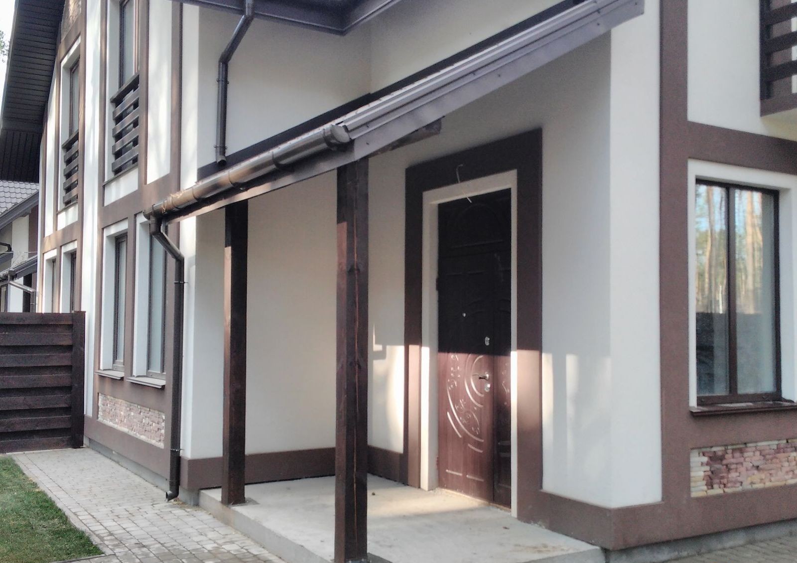 В ходе строительства городка применялась монолитно-каркасная технология. Стены коттеджей выполнены из пустотелого керамического кирпича, фасады утеплены пенополистиролом, покрыты штукатуркой и отделаны декоративным камнем.