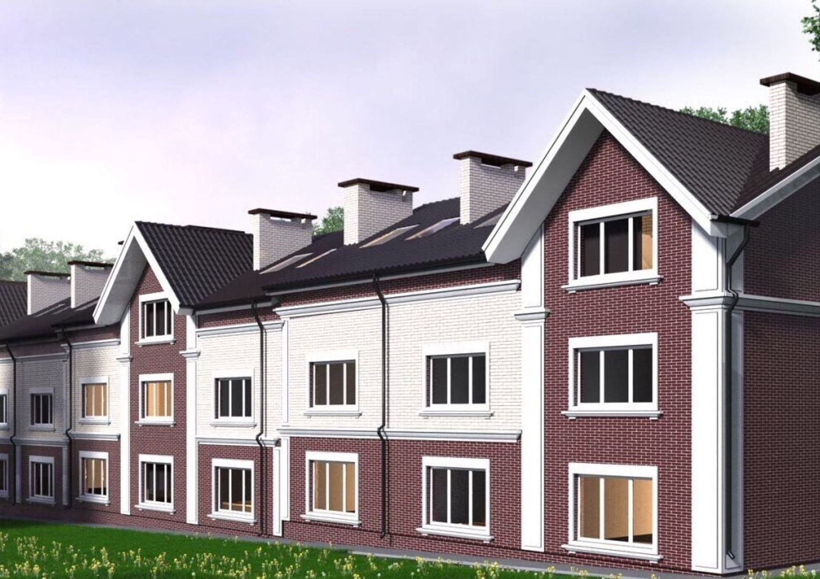 Типовые проекты таунхаусов – это трехуровневые квартиры со своими участками земли. Жилая площадь включает в себя 4 спальни, планировками предусмотрено несколько санузлов. Третий этаж в каждой новостройке – мансардный.