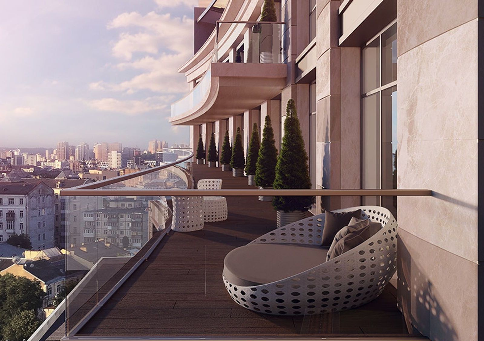 Расположение Linden Luxury Residences — это самый центр Киева, где рядом Национальный банк, Администрация Президента и не строят случайных зданий. В архитектуре комплекса учитывается историческая застройка района: применены светлые тона отделки, горизонтальное деление каждые 2-3 этажа, мягкие переходы линий фасадов и завершение стеклянной «короной» со шпилем.