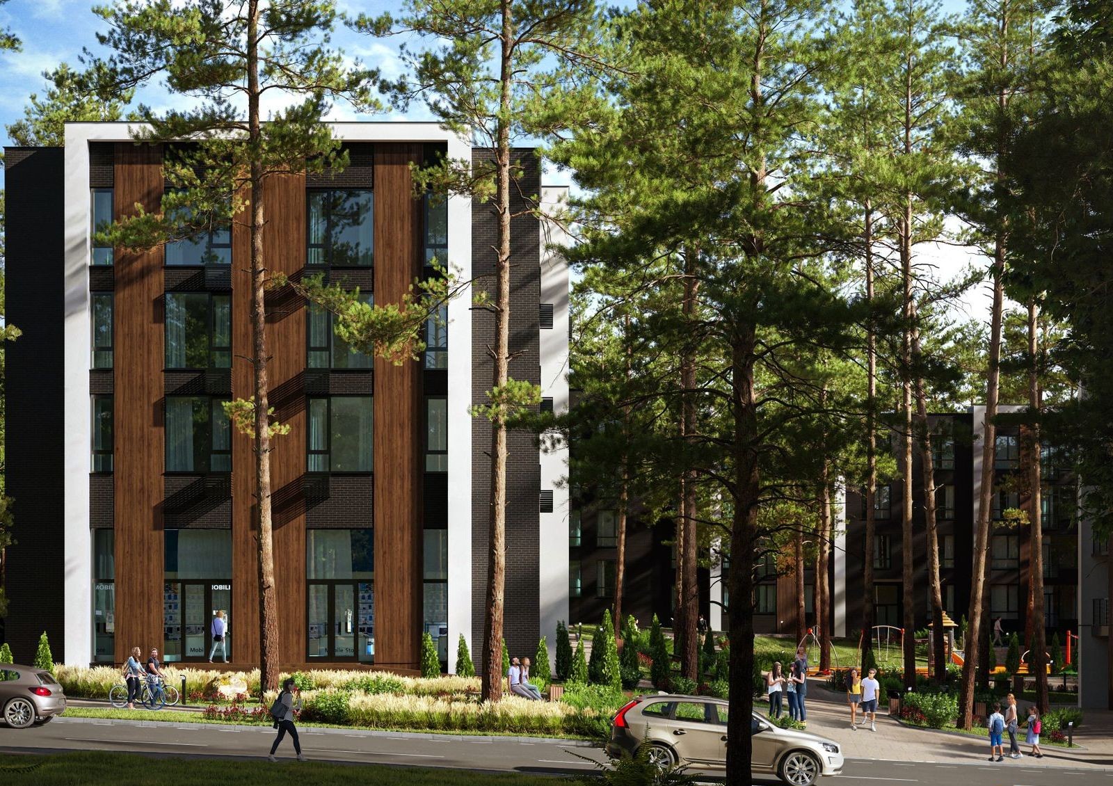 Жилой комплекс Forest Park в Оболонском районе Киева — это альтернатива квартирам «на асфальте», жилье для тех, кто предпочитает жить на природе и дышать свежим воздухом. Малоэтажный жилой квартал расположен посреди соснового леса, в 30 минутах езды от центра столицы и в 13 минутах от Межигорья. По проекту на территории будут игровые площадки для детей, мини-стадион, парковка, медицинский центр, аптека, кафе, отделение банка и небольшой бизнес центр.