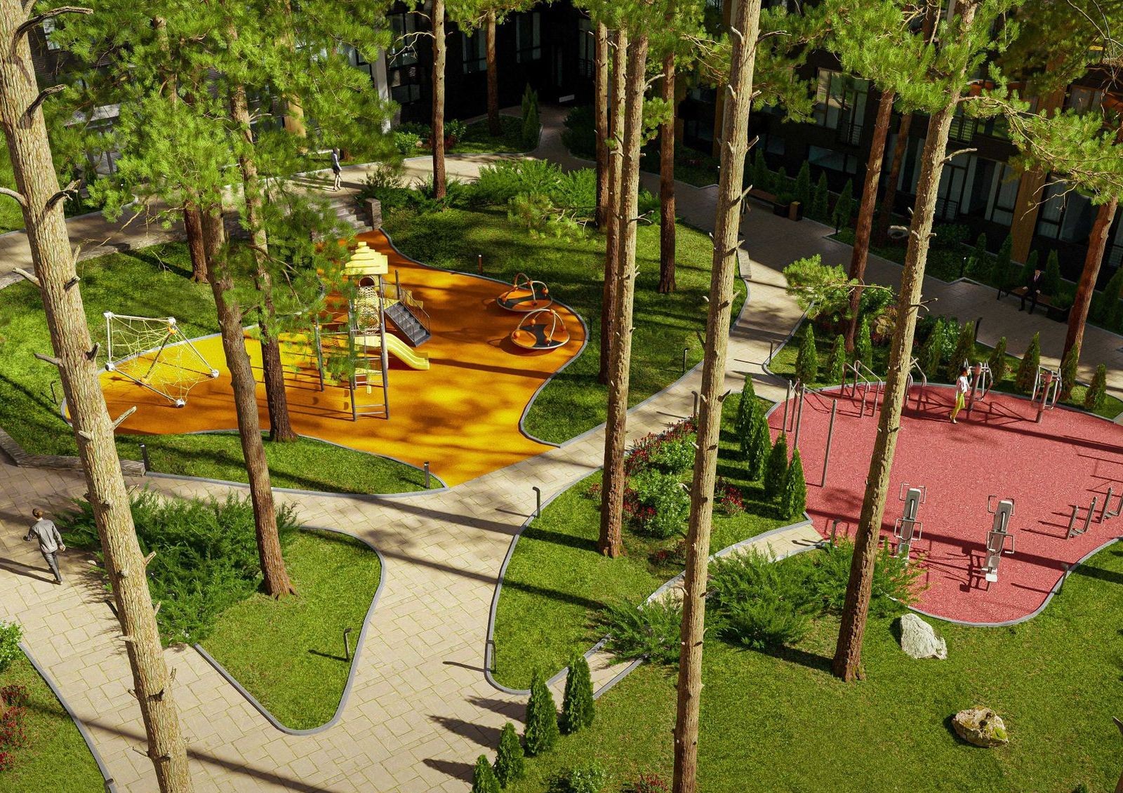 На территории комплекса проектом предусмотрен собственный мини-стадион, где круглый год можно будет заниматься активными видами спорта, йогой и фитнесом. В 12 минутах езды на авто фитнес-центр Sportlife с бассейном, тренажерным залом, студией для групповых занятий, детской фитнес-программой и SPA процедурами, а также спортивный зал «Минский массив».