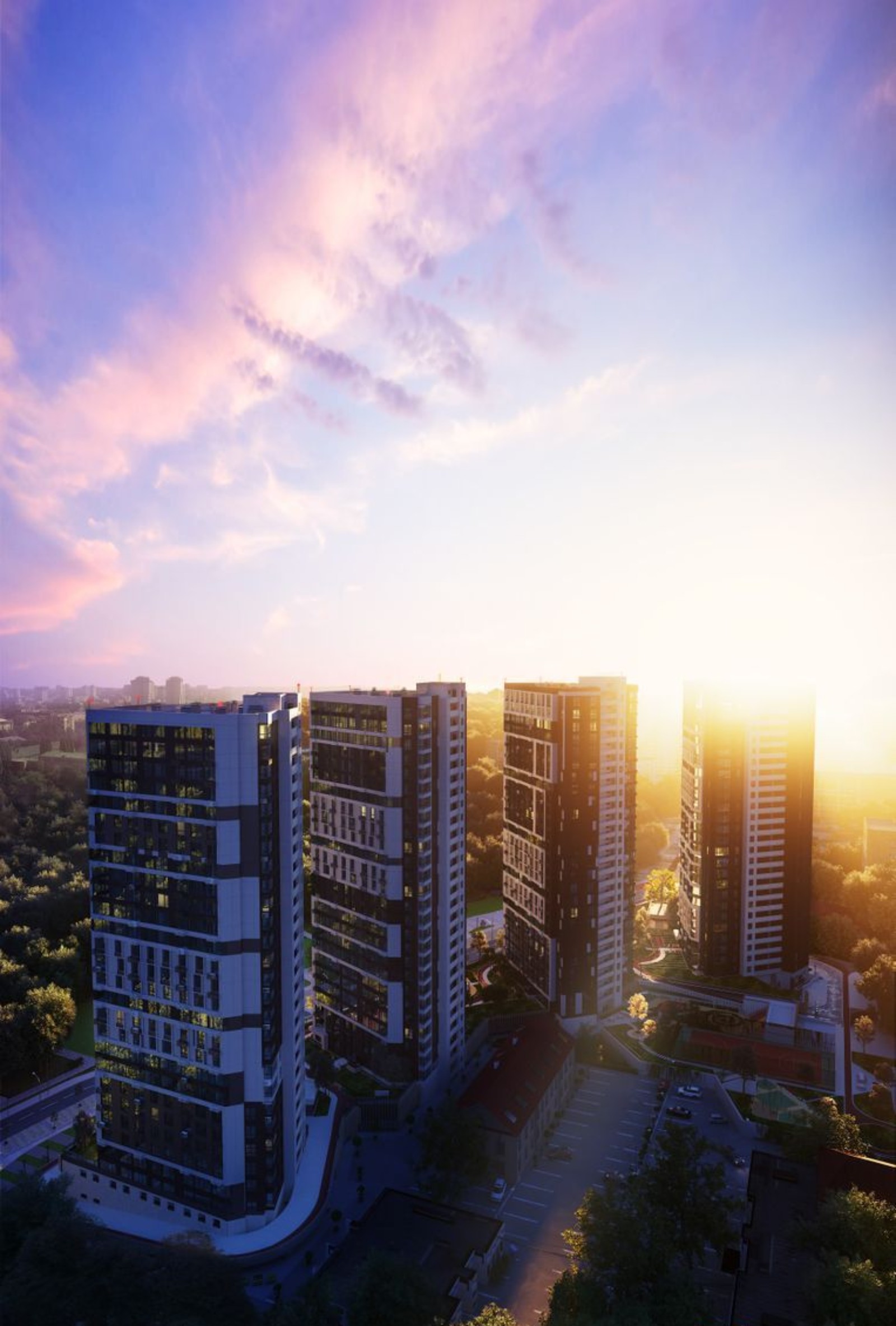 Квартиры комплекса представлены в двух коллекциях. В первой коллекции представлены видовые квартиры с панорамой лесопарковой зоны. В коллекции более 30 видов планировок: от однокомнатных до четырехкомнатных и двухуровневых квартир.
