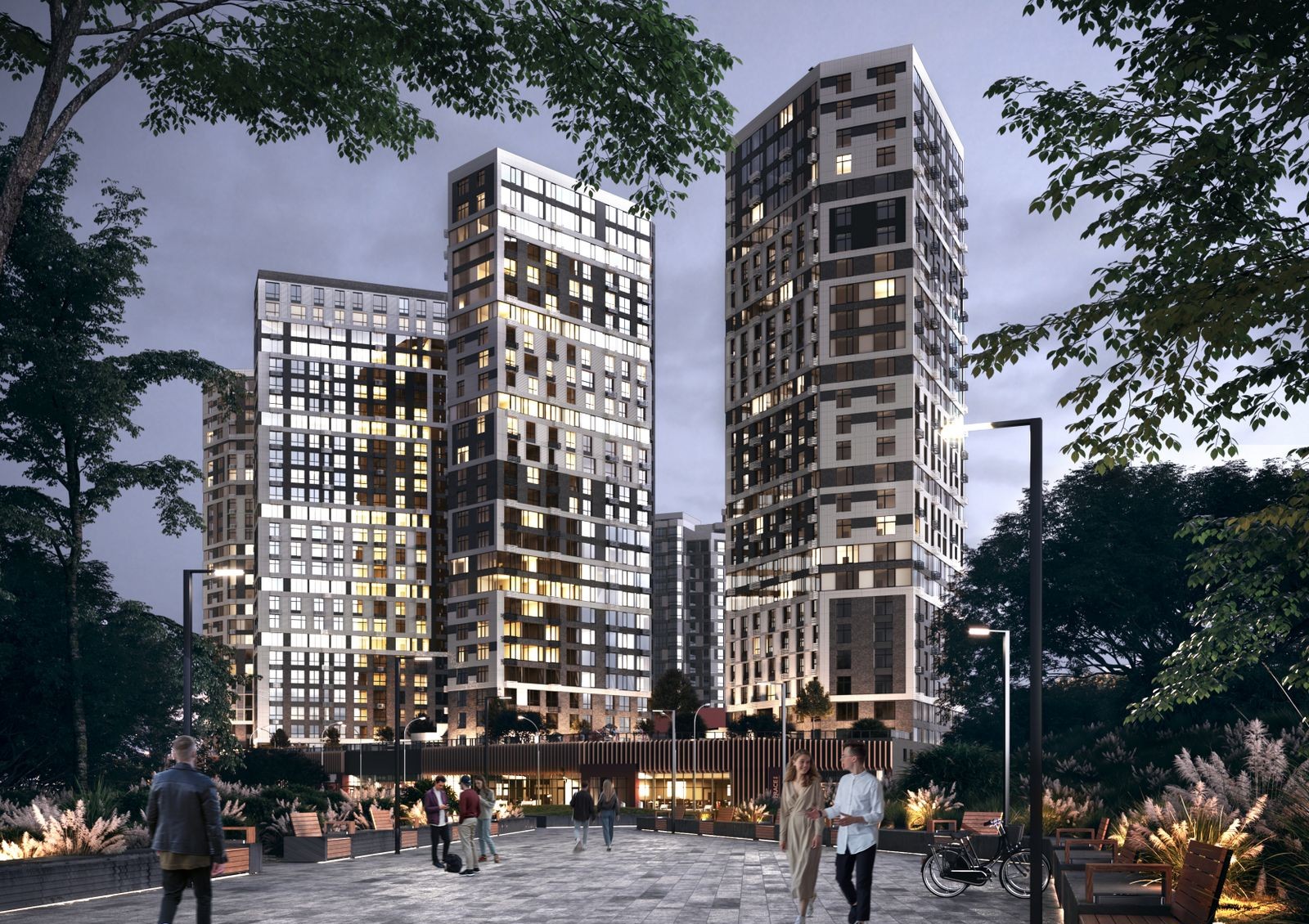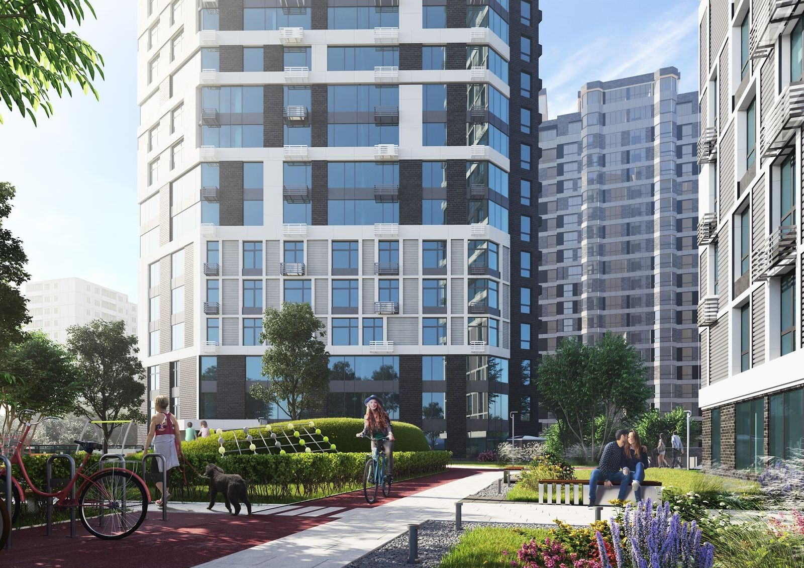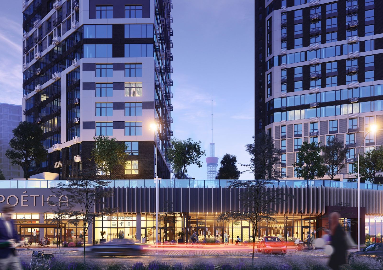 Особенность ЖК Poetica — общий стилобат, который создает закрытое придомовое пространство и обеспечивает жильцов необходимой инфраструктурой. Также будет воплощена концепция двор без авто: крыша стилобатной части предназначена для прогулок и отдыха, а не для стоянки автомобилей во дворе. На придомовой территории предусмотрены игровые детские зоны, спортивные площадки и места для отдыха.