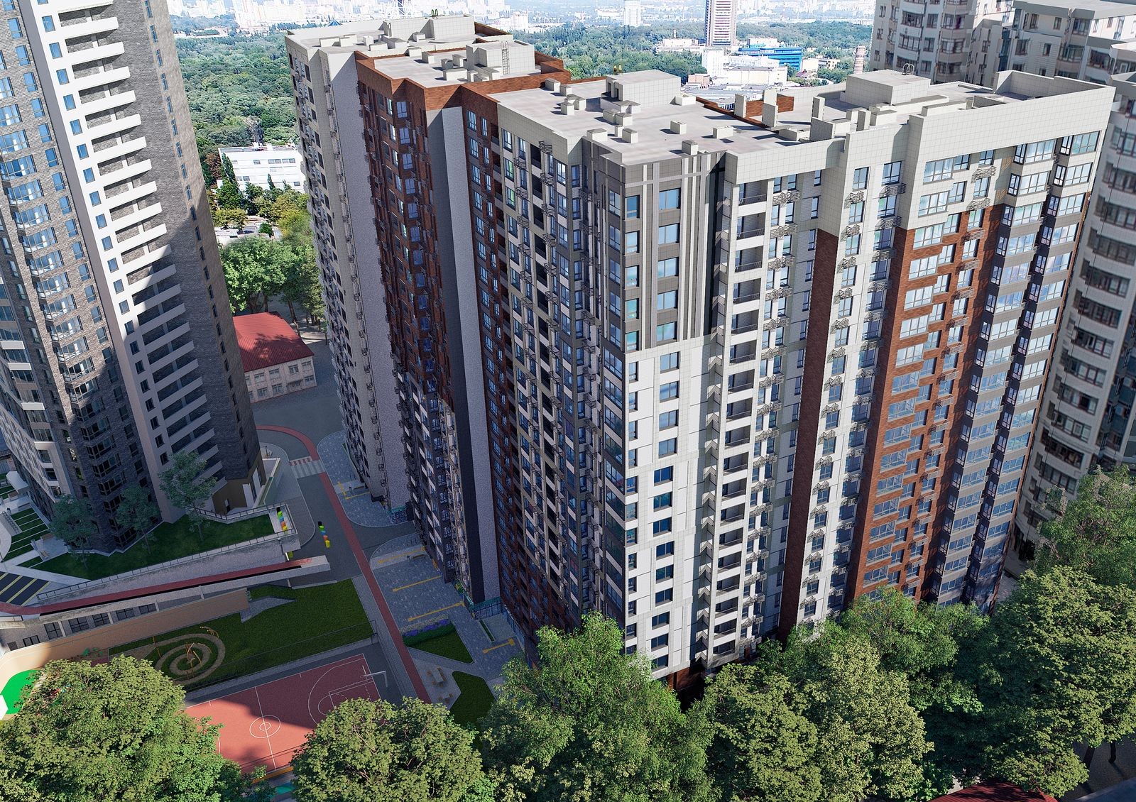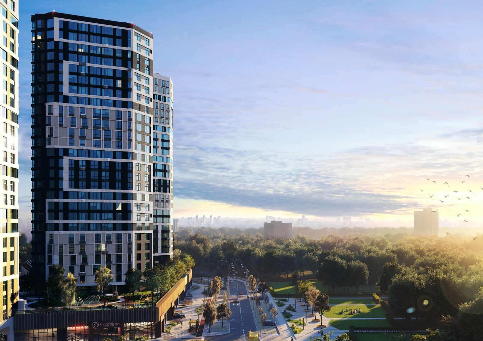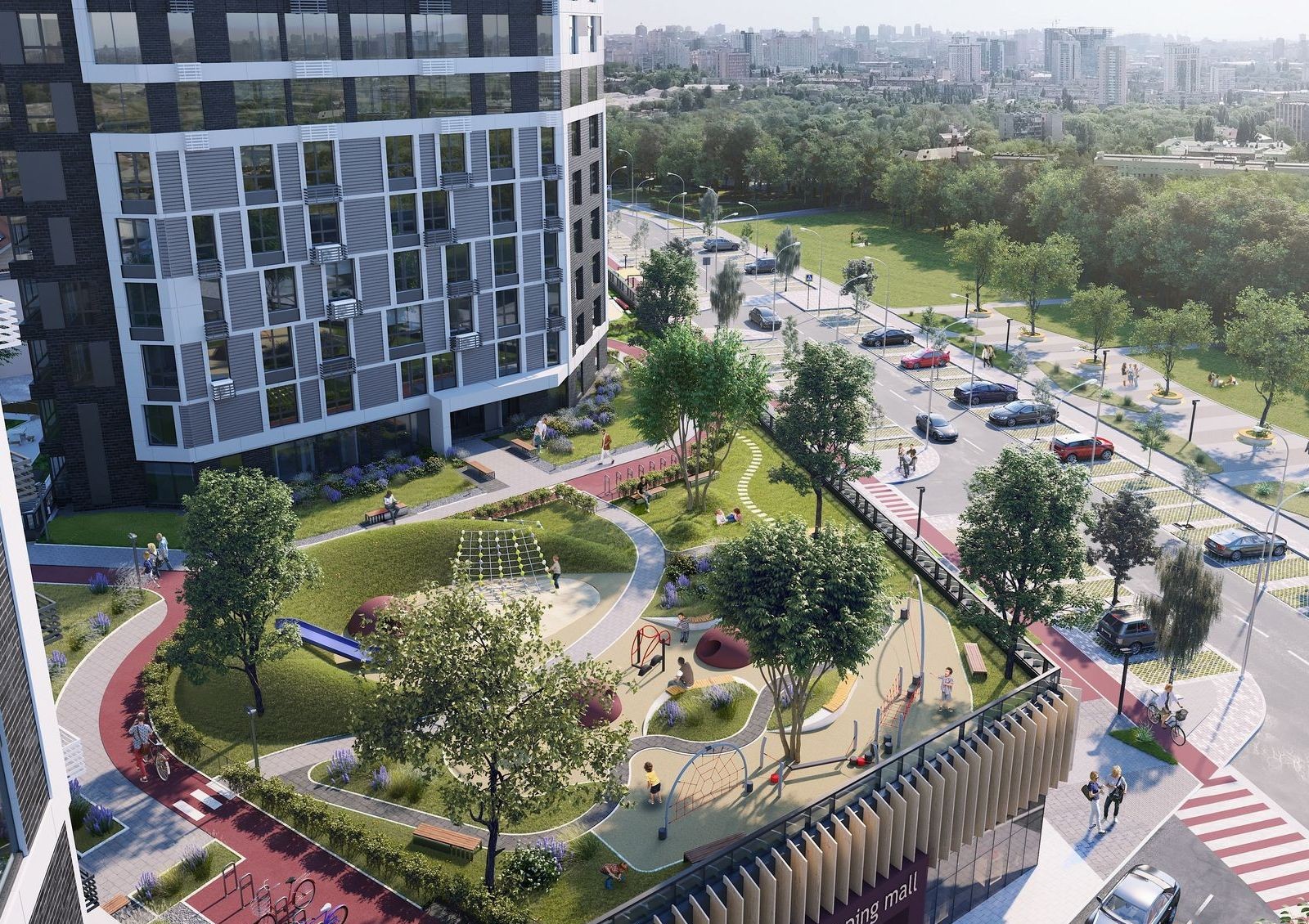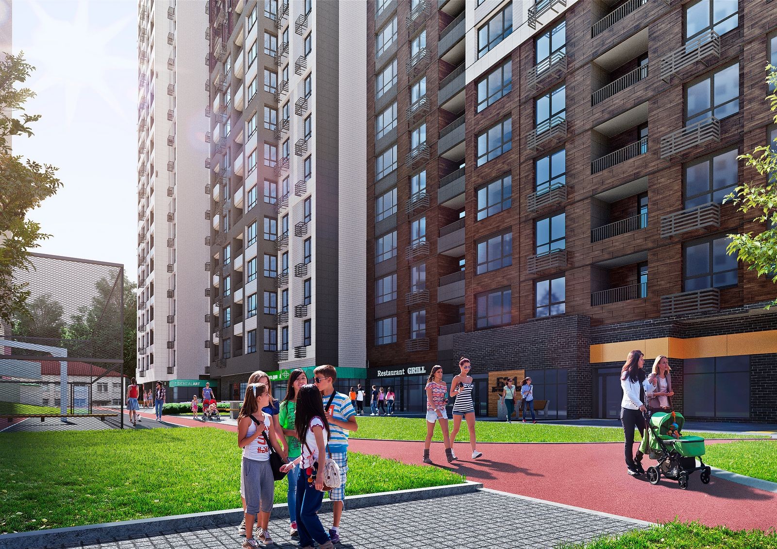 Особенность ЖК Poetica — общий стилобат, который создает закрытое придомовое пространство и обеспечивает жильцов необходимой инфраструктурой. Также будет воплощена концепция двор без авто: крыша стилобатной части предназначена для прогулок и отдыха, а не для стоянки автомобилей во дворе. На придомовой территории предусмотрены игровые детские зоны, спортивные площадки и места для отдыха.