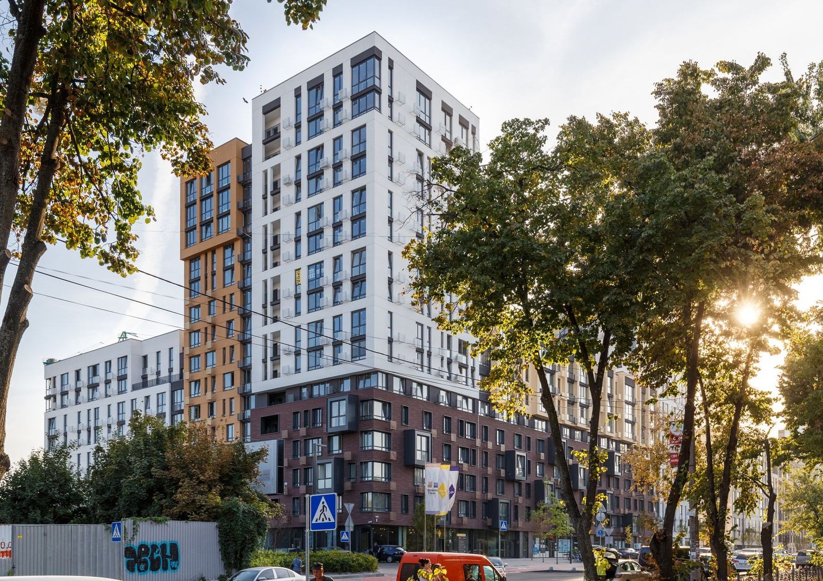 «Файна Таун» – жилой комплекс на ул. Салютная, 2б, сооружаемый по проекту, целью которого является создание заполненного пространством и солнечным светом открытого квартала с комфортной среды обитания.